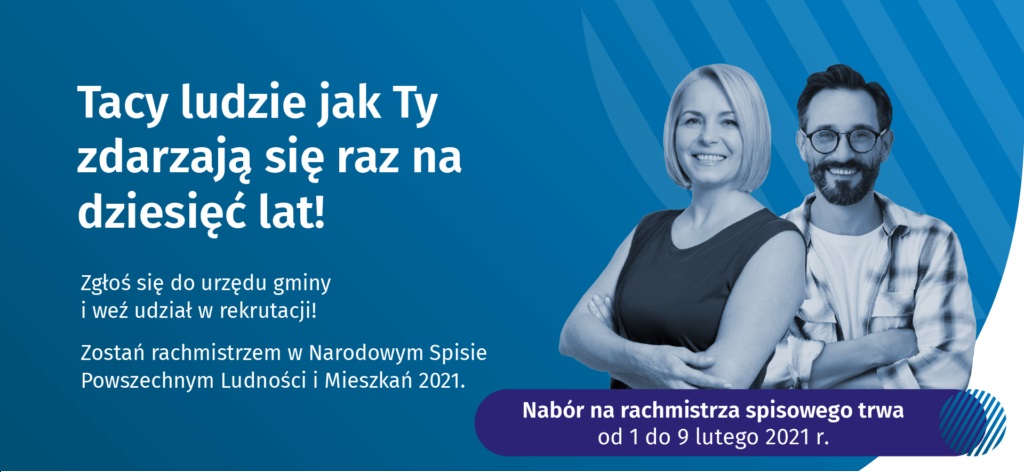 Dnia 10.08.2021 roku, na podstawie art. 24 ust. 1 pkt. 6 ustawy z dnia 9 sierpnia 2019 r. o narodowym spisie powszechnym ludności i mieszkań w 2021 r. (Dz.U. poz.1775, z późn.zm.) - zwany dalej NSP 2021 Gminny Komisarz Spisowy – Burmistrz Łochowa – Robert Mirosław Gołaszewski ogłasza otwarty i konkurencyjny nabór uzupełniający kandydatów na rachmistrzów spisowych wykonujących czynności w ramach prac spisowych związanych z przeprowadzeniem na terytorium Rzeczpospolitej Polskiej w 2021 r. spisu powszechnego NSP 2021.