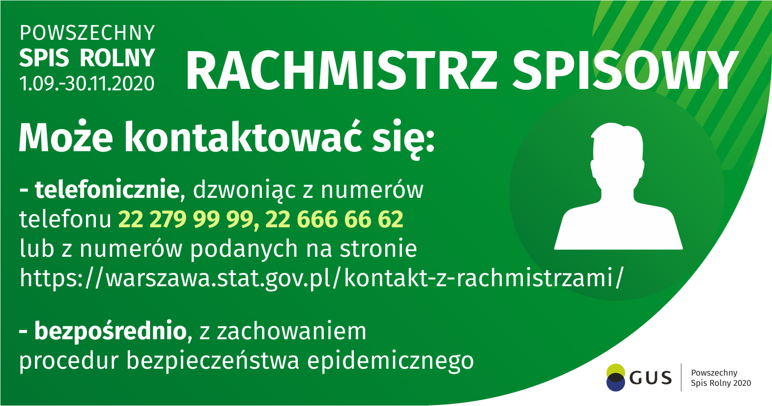 W odpowiedzi na zapotrzebowanie zgłaszane przez rolników, a także gotowość znacznej części rachmistrzów do pracy w terenie w trudnych warunkach epidemicznych, od soboty 10 października w gminach na Mazowszu i w całej Polsce będzie możliwość spisania gospodarstwa rolnego podczas wywiadu bezpośredniego. ZACHOWANE BĘDĄ WSZYSTKIE PROCEDURY BEZPIECZEŃSTWA EPIDEMICZNEGO!