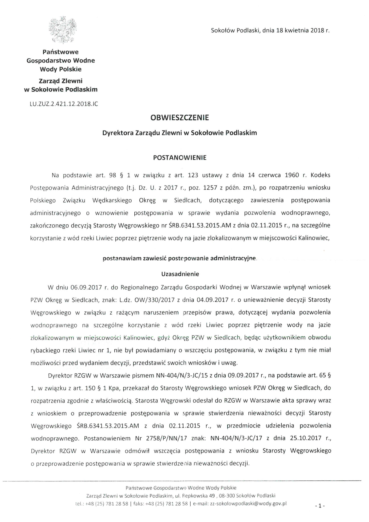 Obwieszczenie PGWWP Zarząd Zlewni w Sokołowie Podlaskim