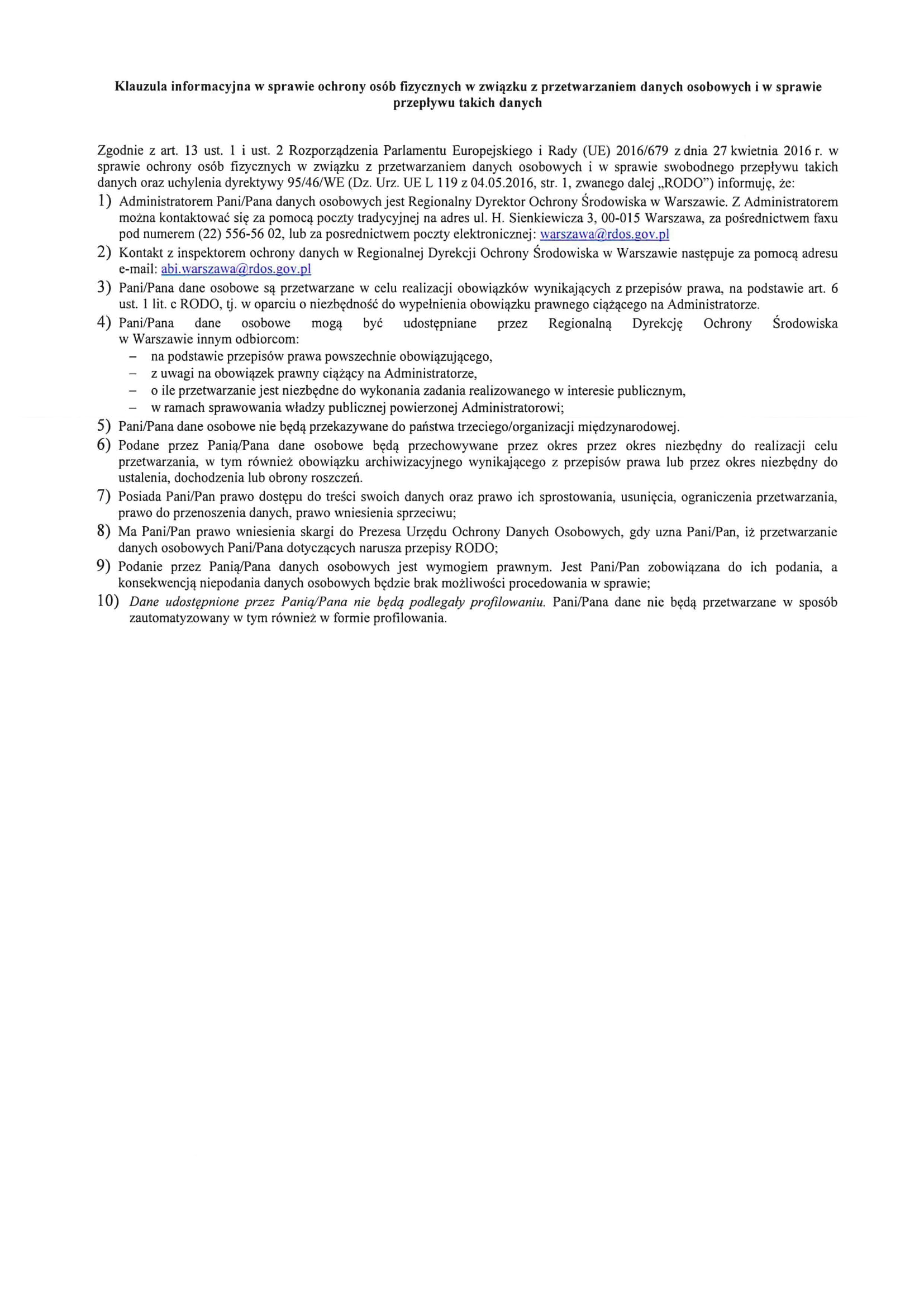 Obwieszczenie Regionalnego Dyrektora Ochrony Środowiska w Warszawie