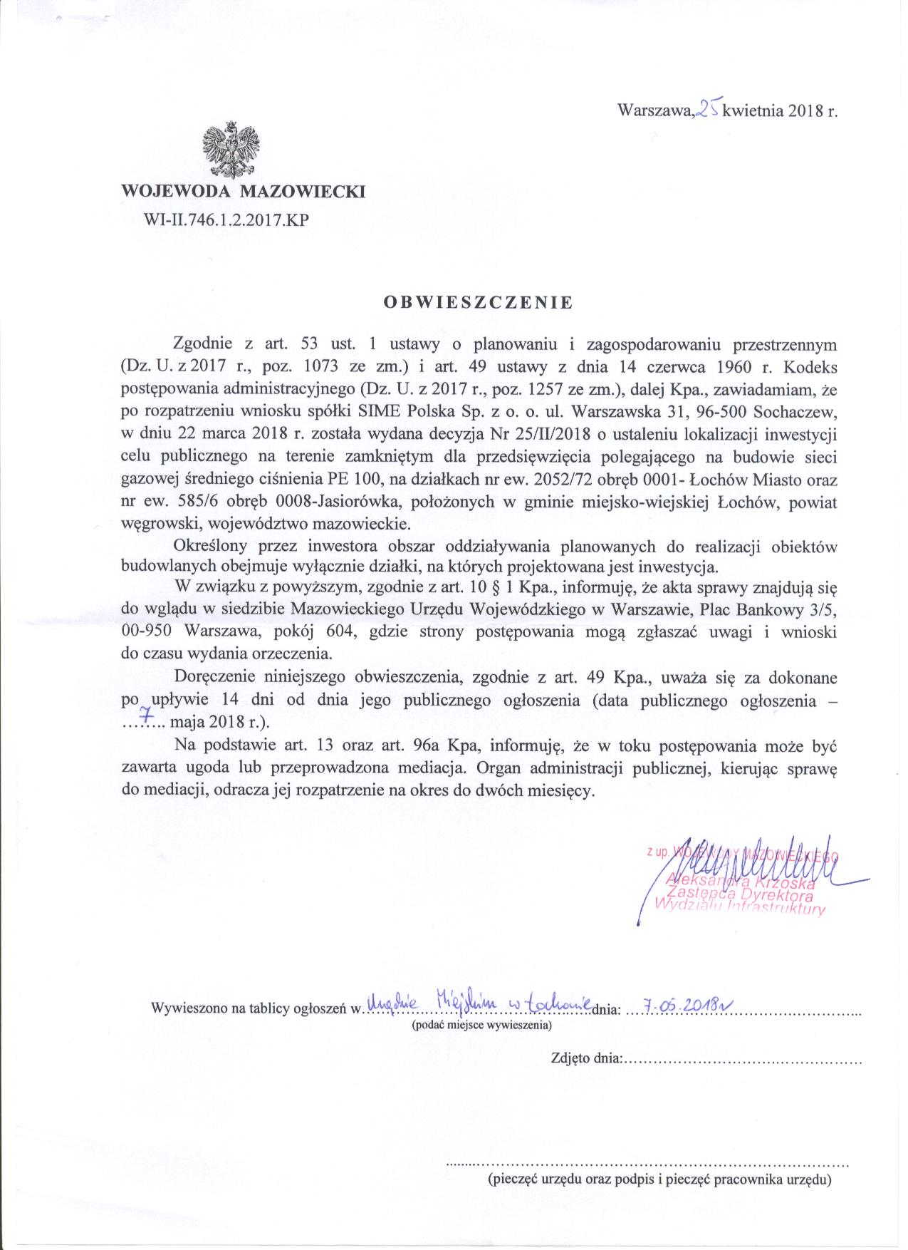 Obwieszczenie Wojewody Mazowieckiego
