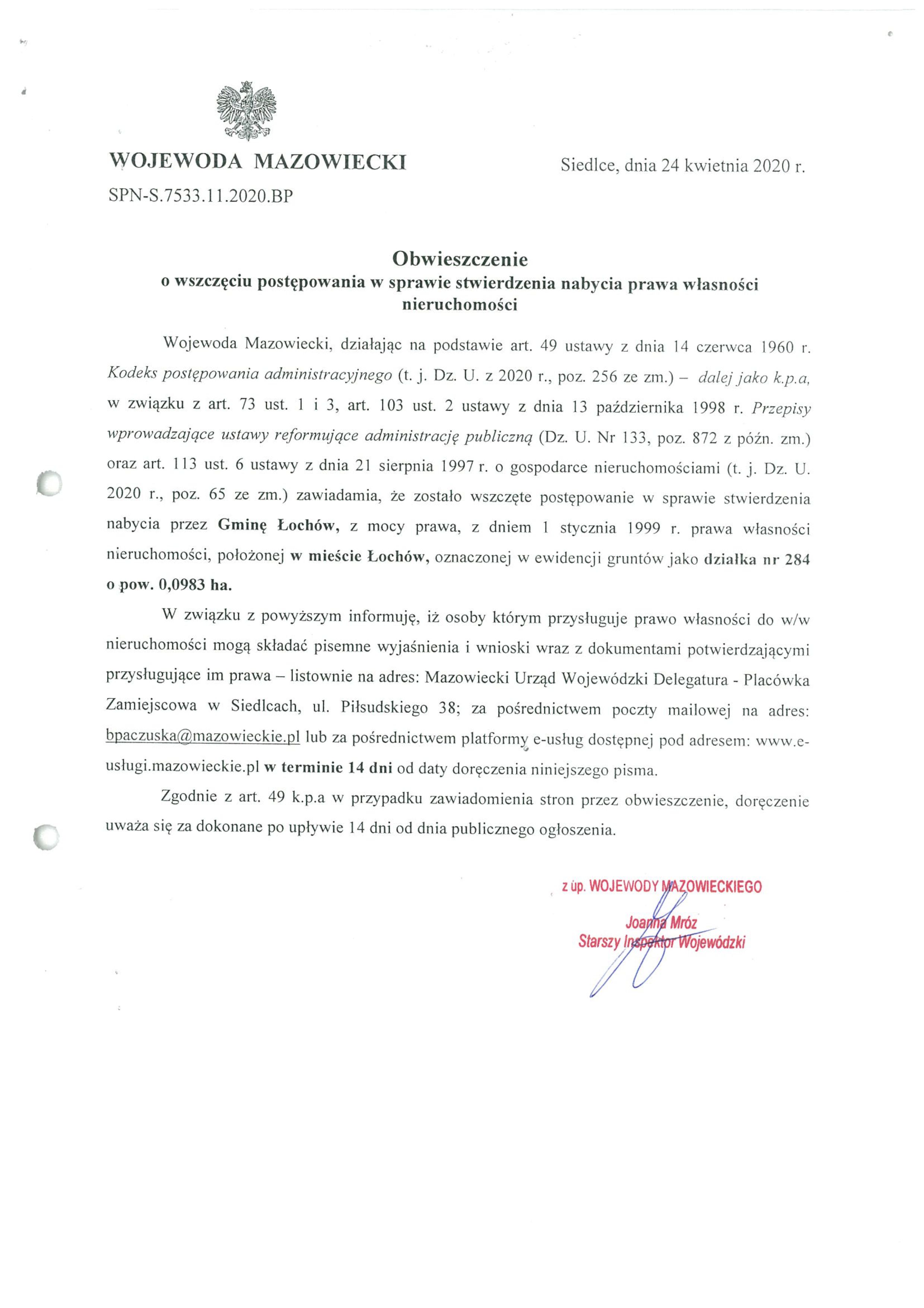 Obwieszczenie Wojewody Mazowieckiego z dnia 24 kwietnia 2020 r.