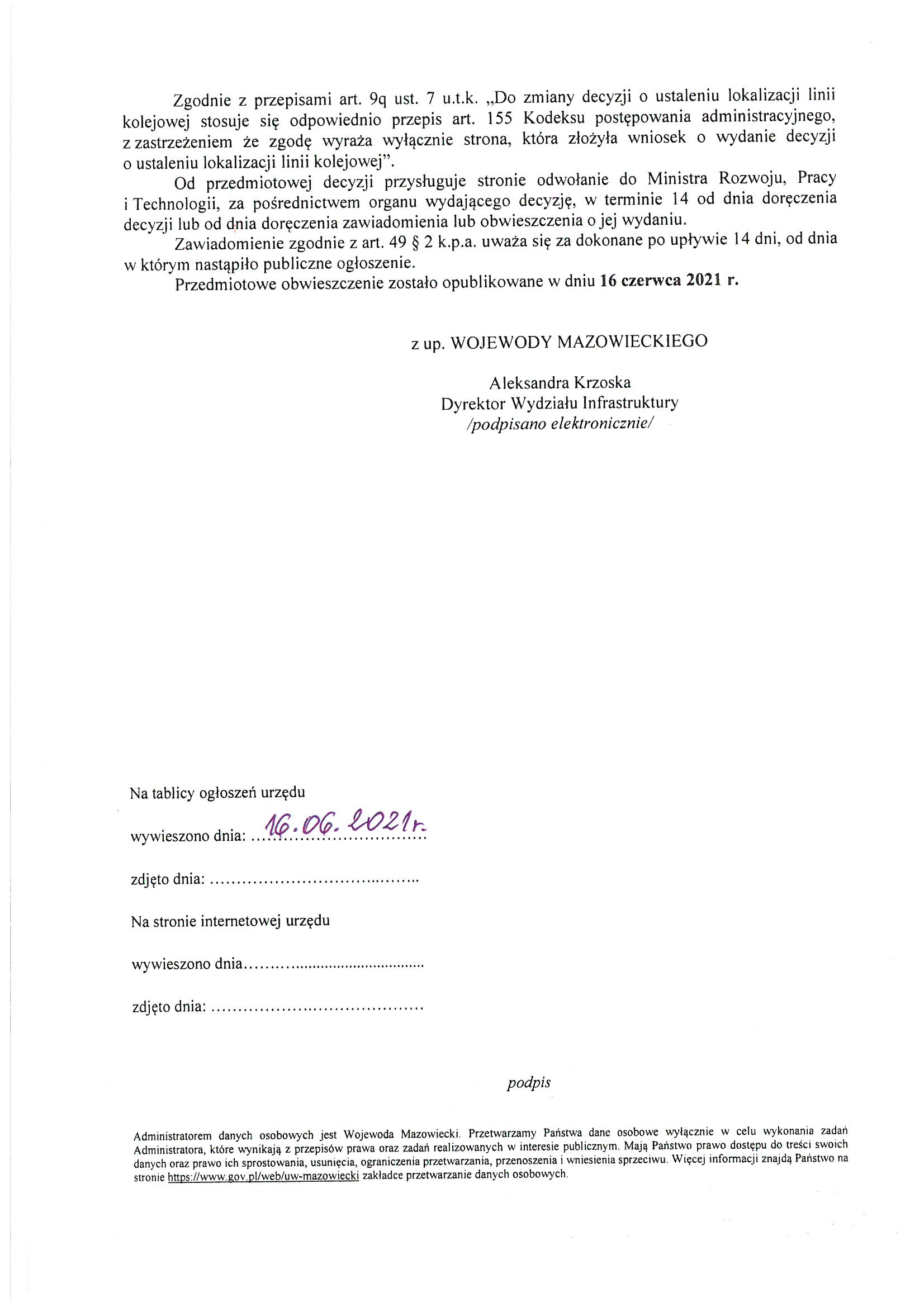 Obwieszczenie Wojewody Mazowieckiego z dnia 7 czerwca 2021 roku
