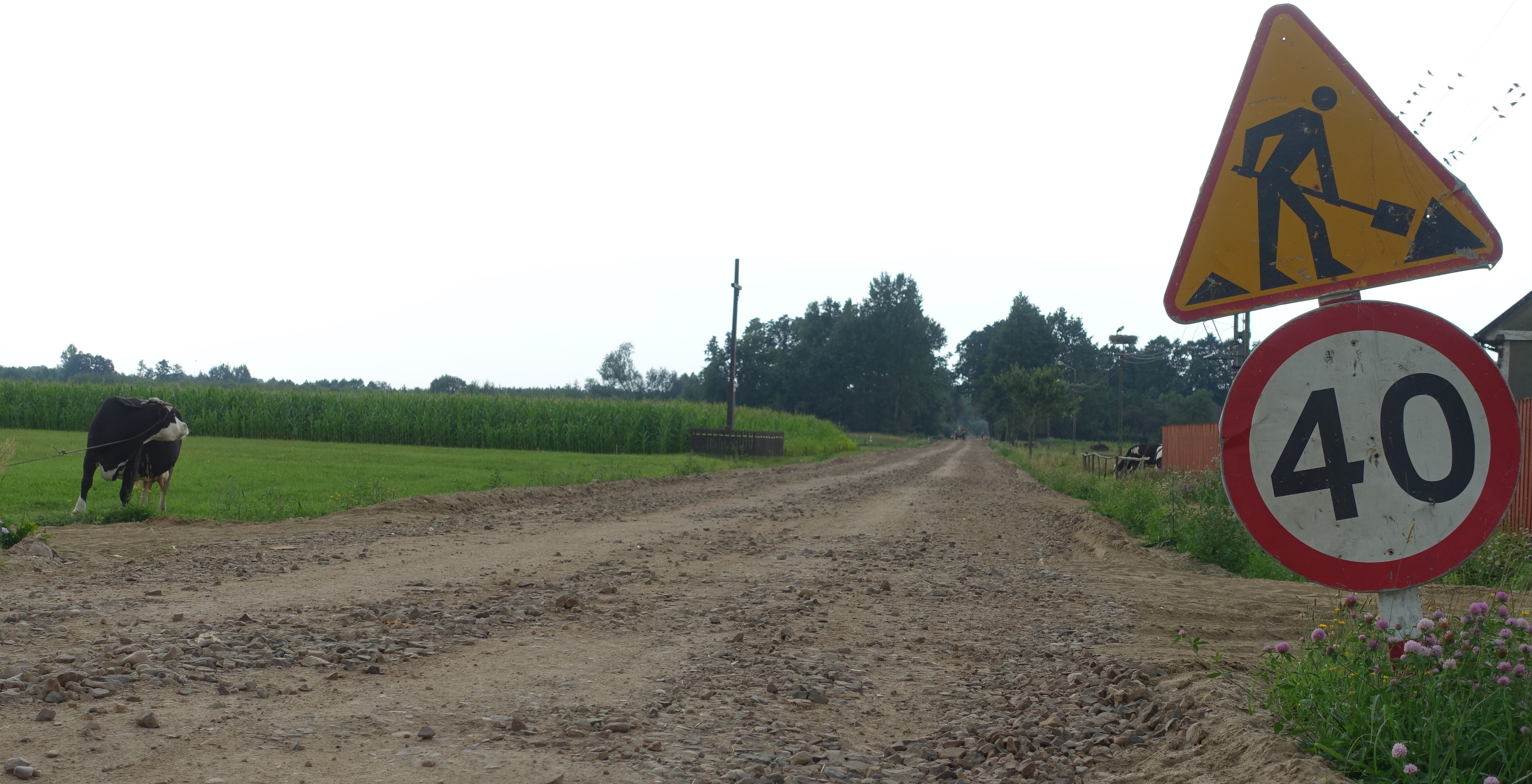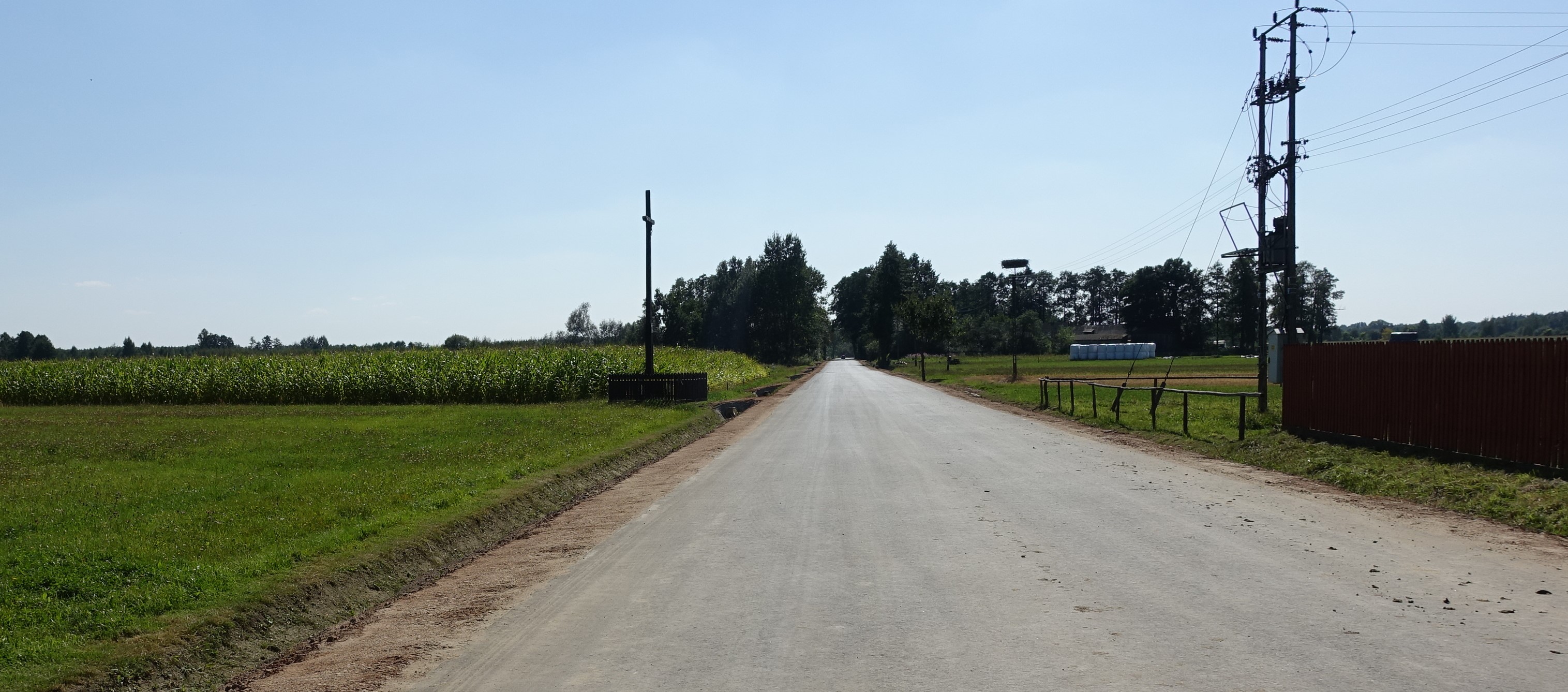 Wykonanie drogi jednojezdniowej dwupasmowej o szerokości jezdni 5,00m wykonanej na podbudowie z kruszywa łamanego oraz z dwóch warstw betonu asfaltowego, wykonanie poboczy utwardzonych, zjazdów. W ramach zadania odtworzone zostaną przydrożne rowy, do których odprowadzane będą wody opadowe oraz roztopowe z drogi i z przyległych gruntów rolnych oraz przebudowane 3 przepusty poprzeczne pod koroną drogi