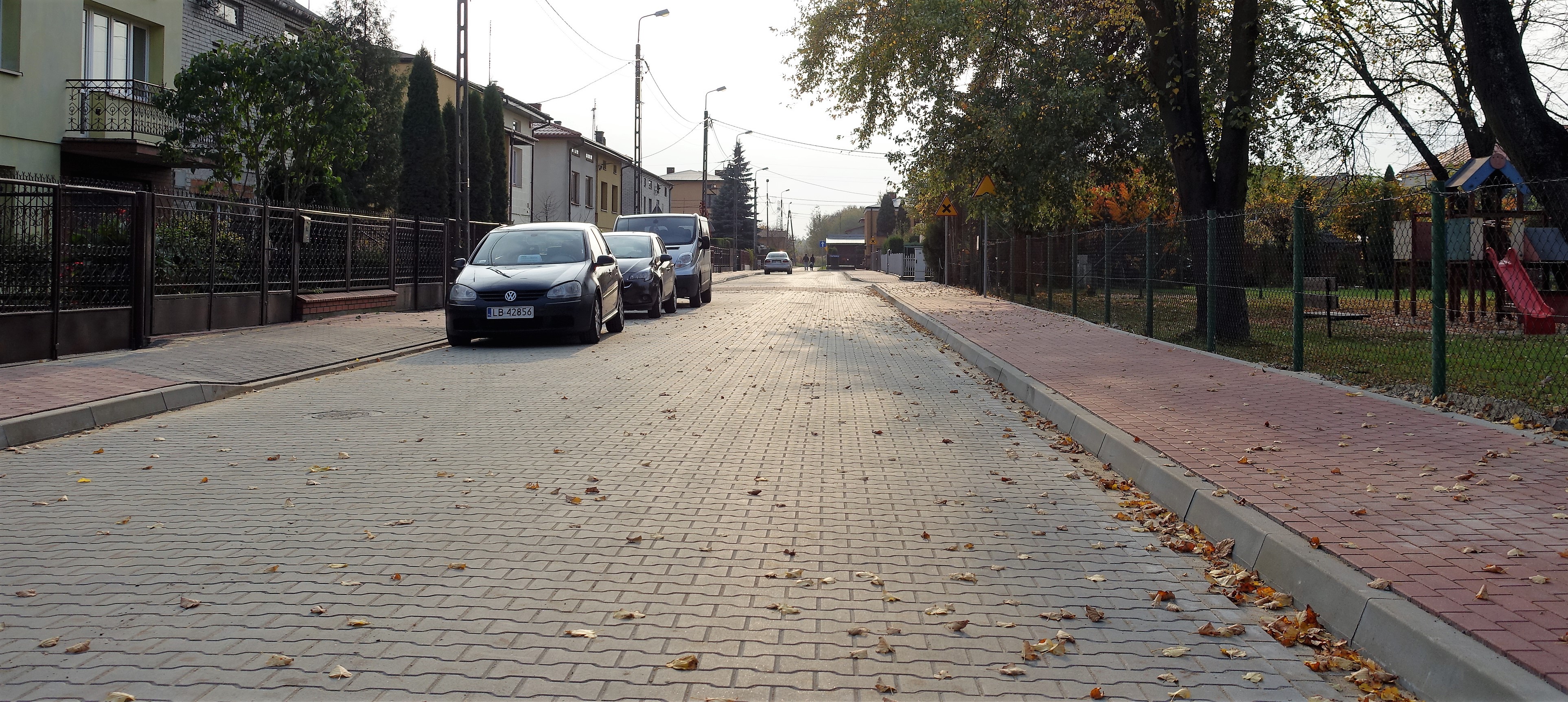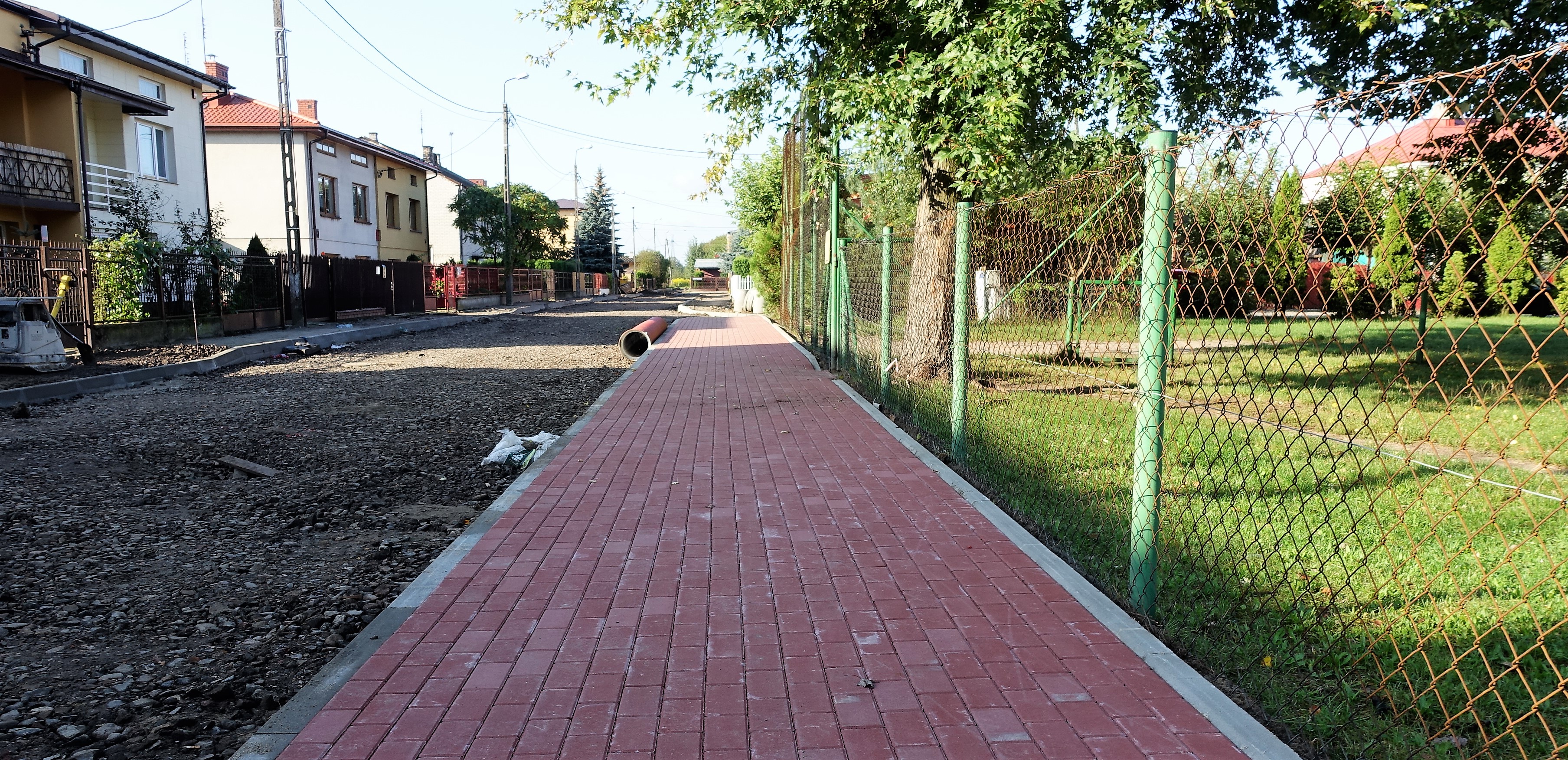 2) przebudowę chodników dla pieszych: 493m2 wykonanych z kostki brukowej betonowej grubości 6cm, kolorowej, układanej na podsypce cementowo-piaskowej,