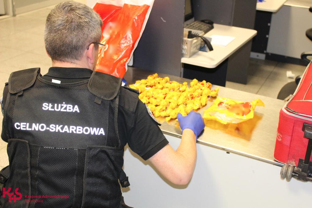 Funkcjonariusze Służby Celno-Skarbowej wytypowali do kontroli z przejścia „Nic do zgłoszenia” w strefie przylotów Portu Lotniczego im. F. Chopina w Warszawie, jedną z podróżujących osób. Poddana weryfikacji 39. letnia Brazylijka zachowywała się nerwowo. W bagażu rejestrowanym zatrzymanej kobiety nie znaleziono nic podejrzanego, ale sprawdzenie zawartości foliowej torby, którą miała ze sobą, przyniosła zaskakujący efekt. W reklamówce znajdowała się jedna paczka hermetycznie zapakowanych cukierków. Jak się okazało, nie były to zwyczajne cukierki, a ujawniony w nich biały proszek tylko przypominał cukier.
