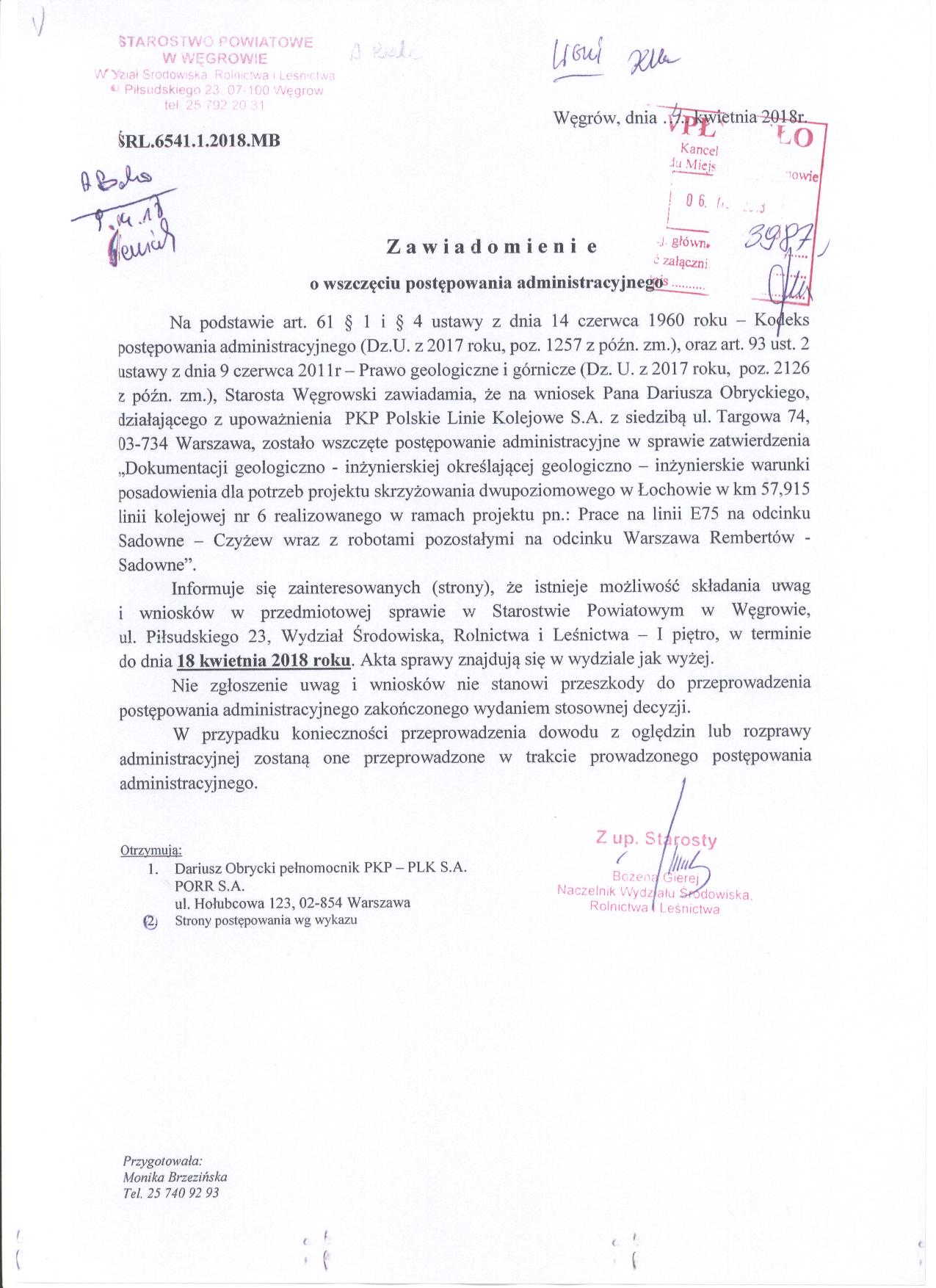 Starostwo Powiatowe w Węgrowie zawiadamia