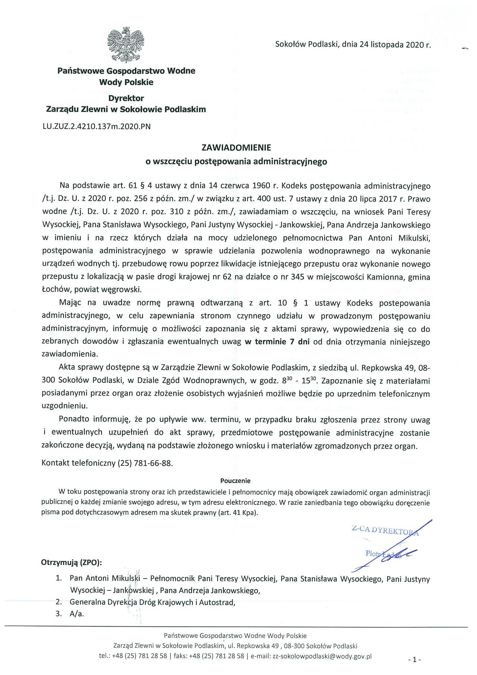 Wody Polskie - Zawiadomienie o wszczęciu postępowania administracyjnego