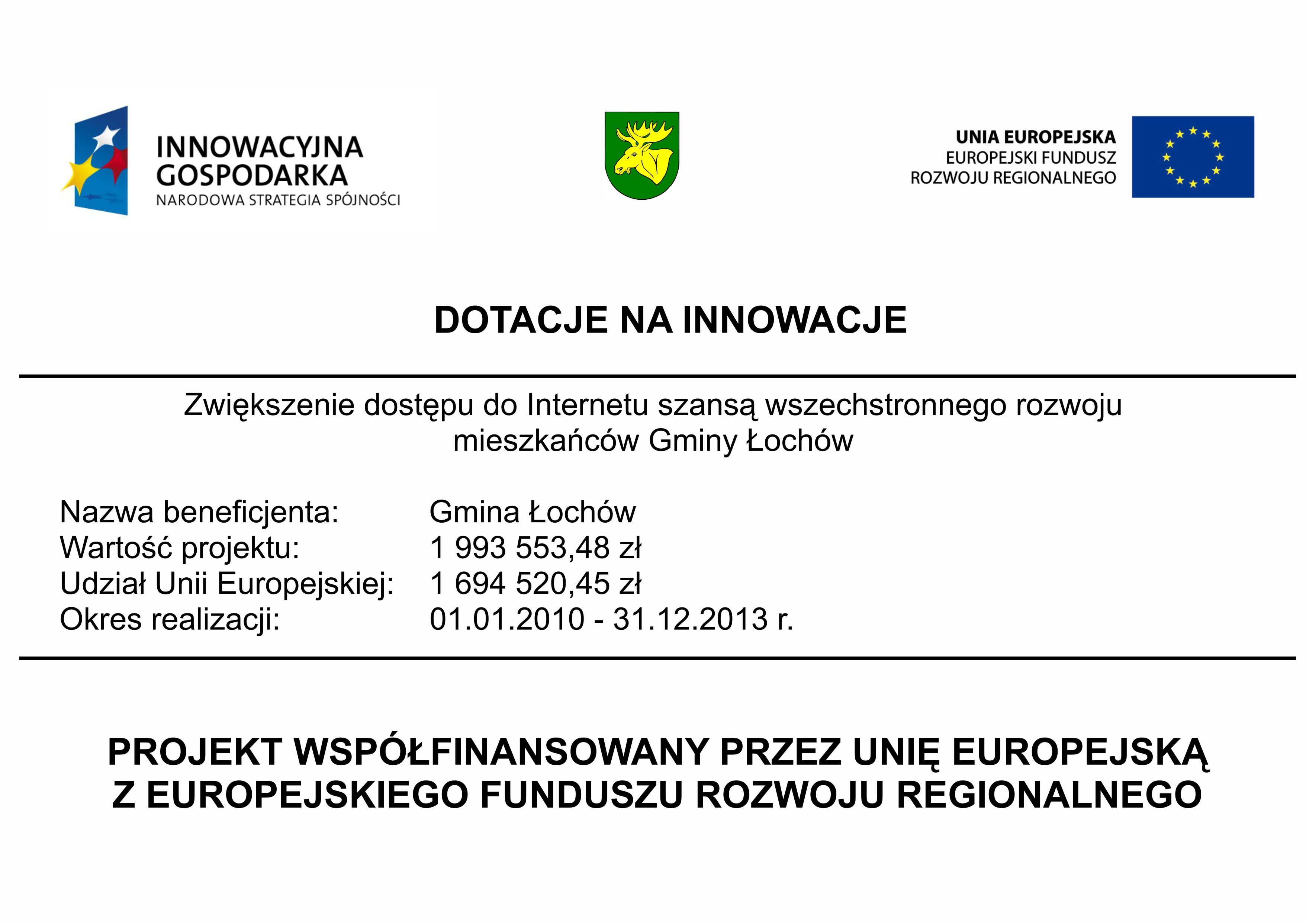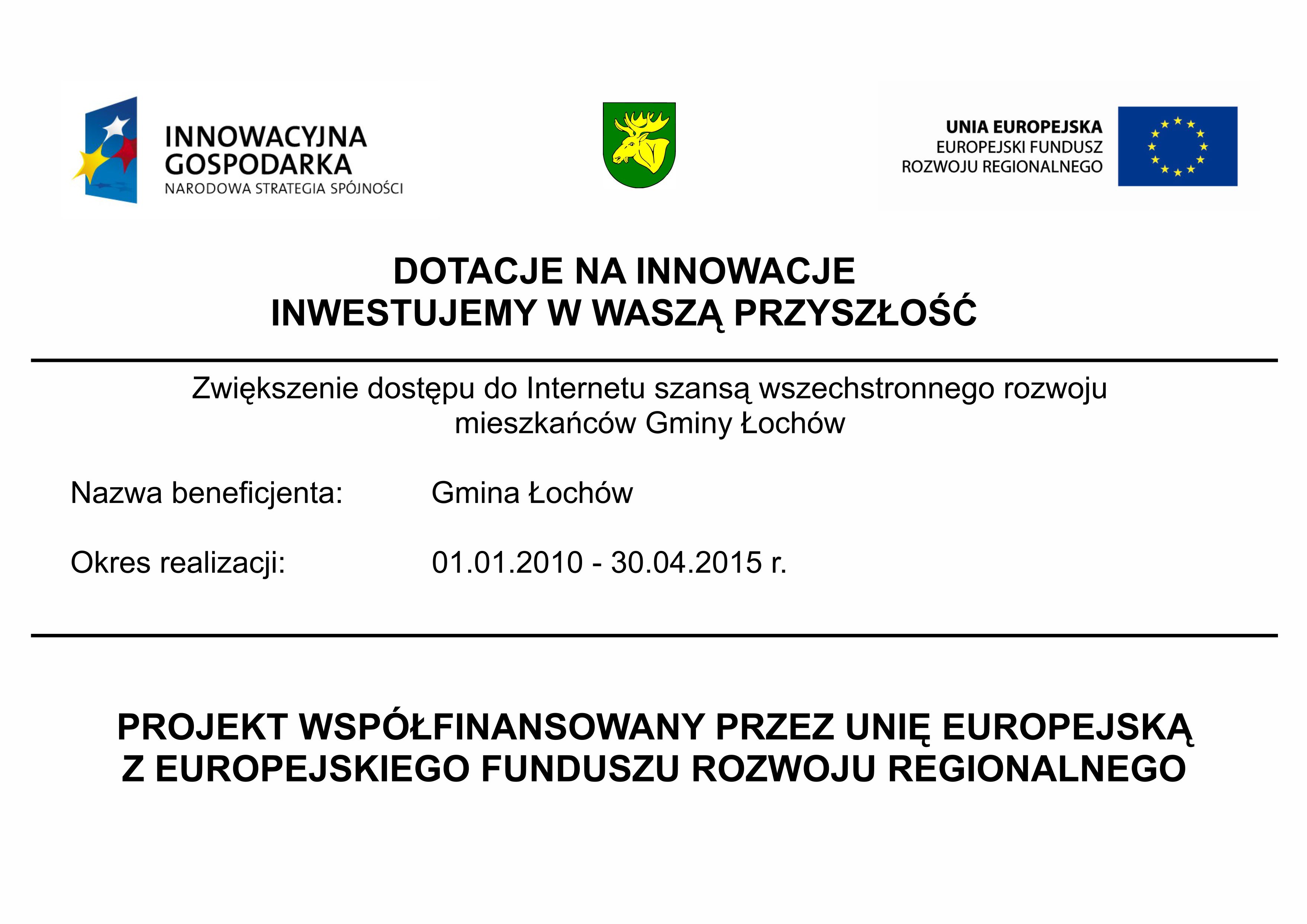 Dotyczy umowy o dofinansowanie projektu pn. „Uzupełnienie gospodarki wodno-ściekowej w Gminie Łochów”, działanie 2.3 Gospodarka wodno-ściekowa w aglomeracjachProgramu Operacyjnego Infrastruktura i Środowisko 2014-2020.