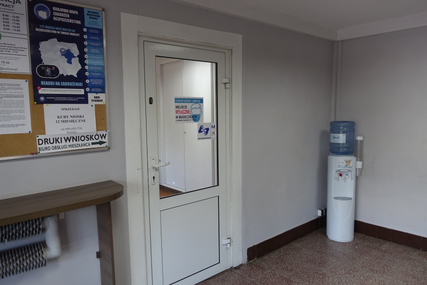 Po wejściu do budynku po lewej stronie jest Biuro Obsługi Mieszkańca