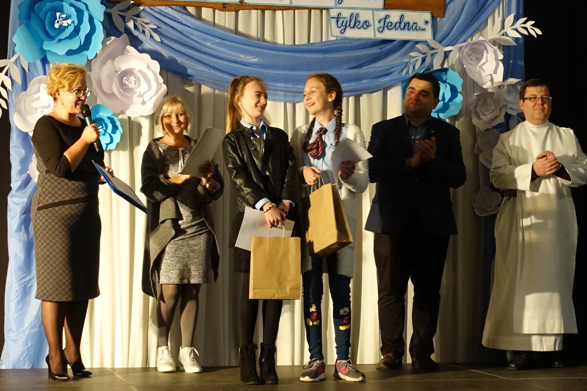 „Chociaż wiele nosisz imion, jesteś tylko jedna” – pod takim hasłem Dyrektor Katolickiej Szkoły Podstawowej w Kaliskach Małgorzata Siuchta zorganizowała Festiwal Piosenki Maryjnej. Festiwal odbył się 13 października w Miejskim i Gminnym Domu Kultury w Łochowie. Swoimi umiejętnościami dzieliło się prawie 170 wykonawców. Były emocje, ale przede wszystkim modlitwa przez śpiew i dobra zabawa. O nagrody walczyły dzieci i młodzież w trzech grupach wiekowych: dzieci przedszkolne, szkoła I-III klasa i klasy IV –VII z oddziałami gimnazjalnymi.