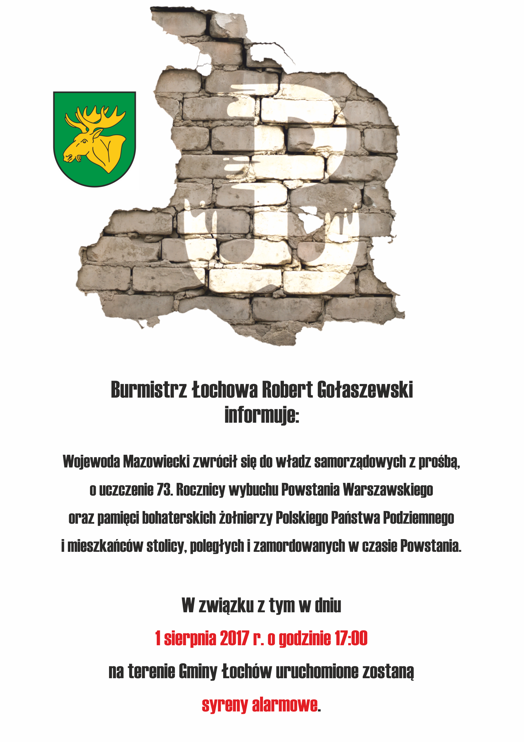 Informacja Burmistrza o uczczeniu powstania Warszawskiego