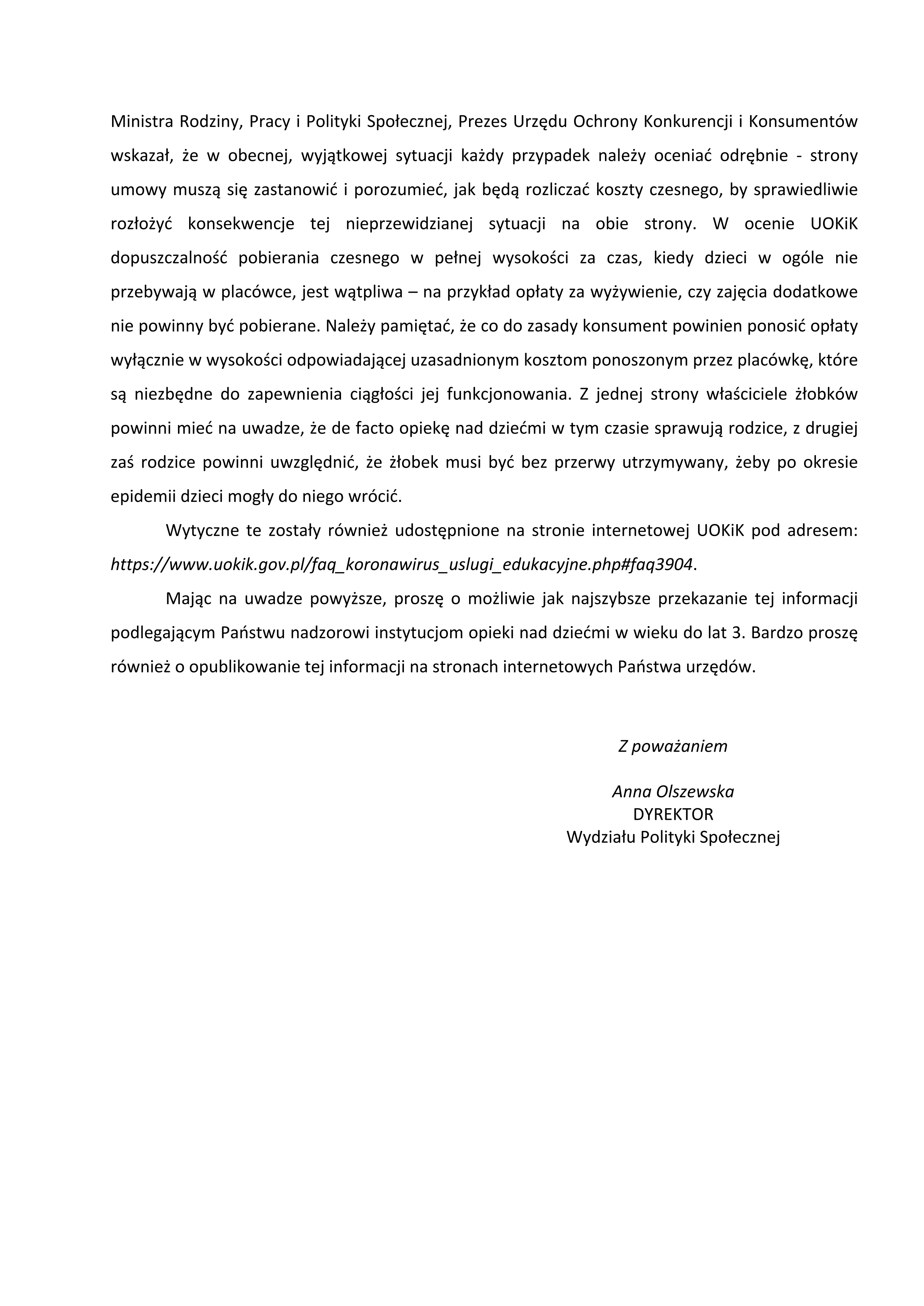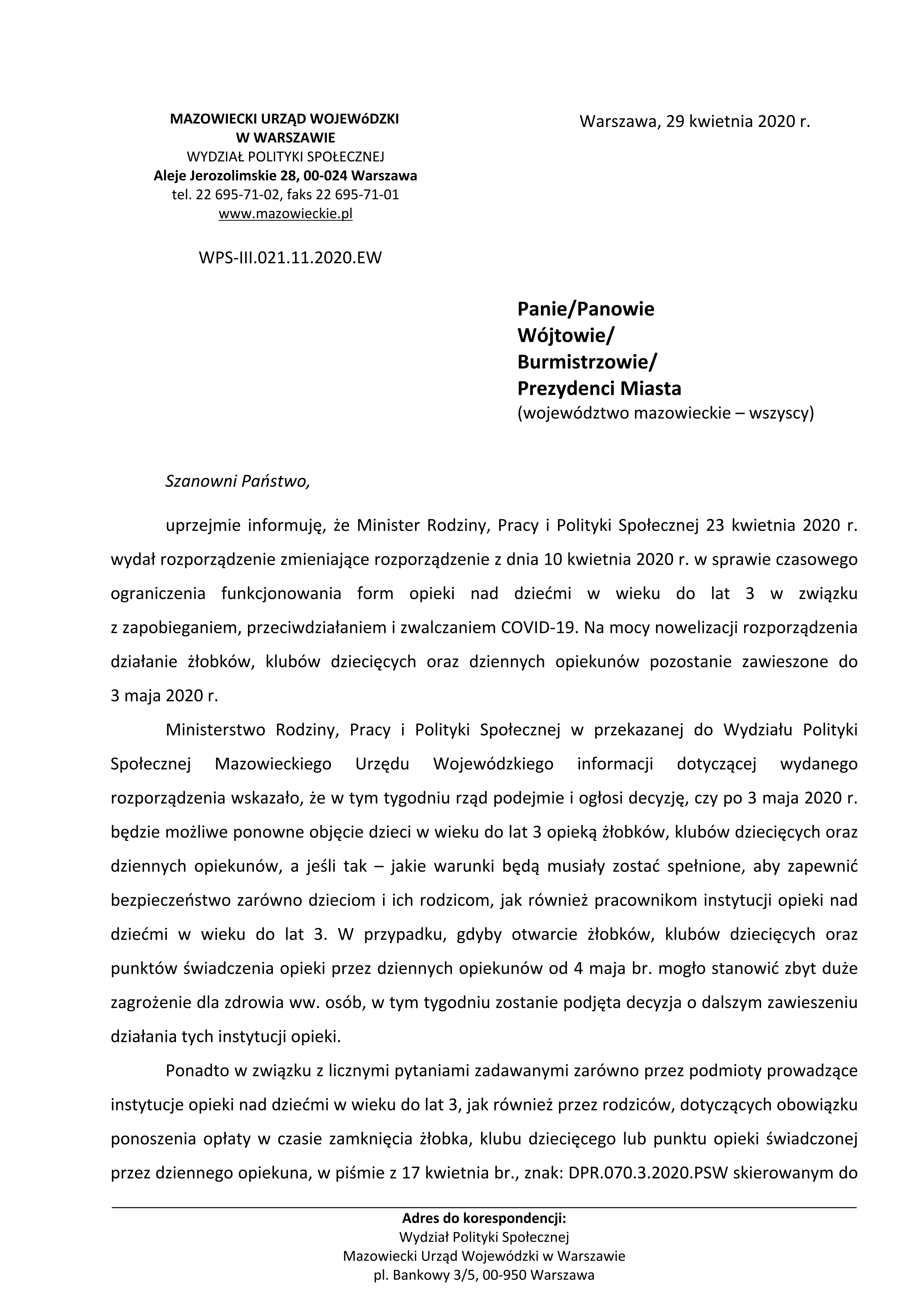 Informacja Dyrektora Wydziału Polityki Społecznej Mazowieckiego Urzędu Wojewódzkiego w sprawie funkcjonowania form opieki nad dziećmi w wieku do lat 3