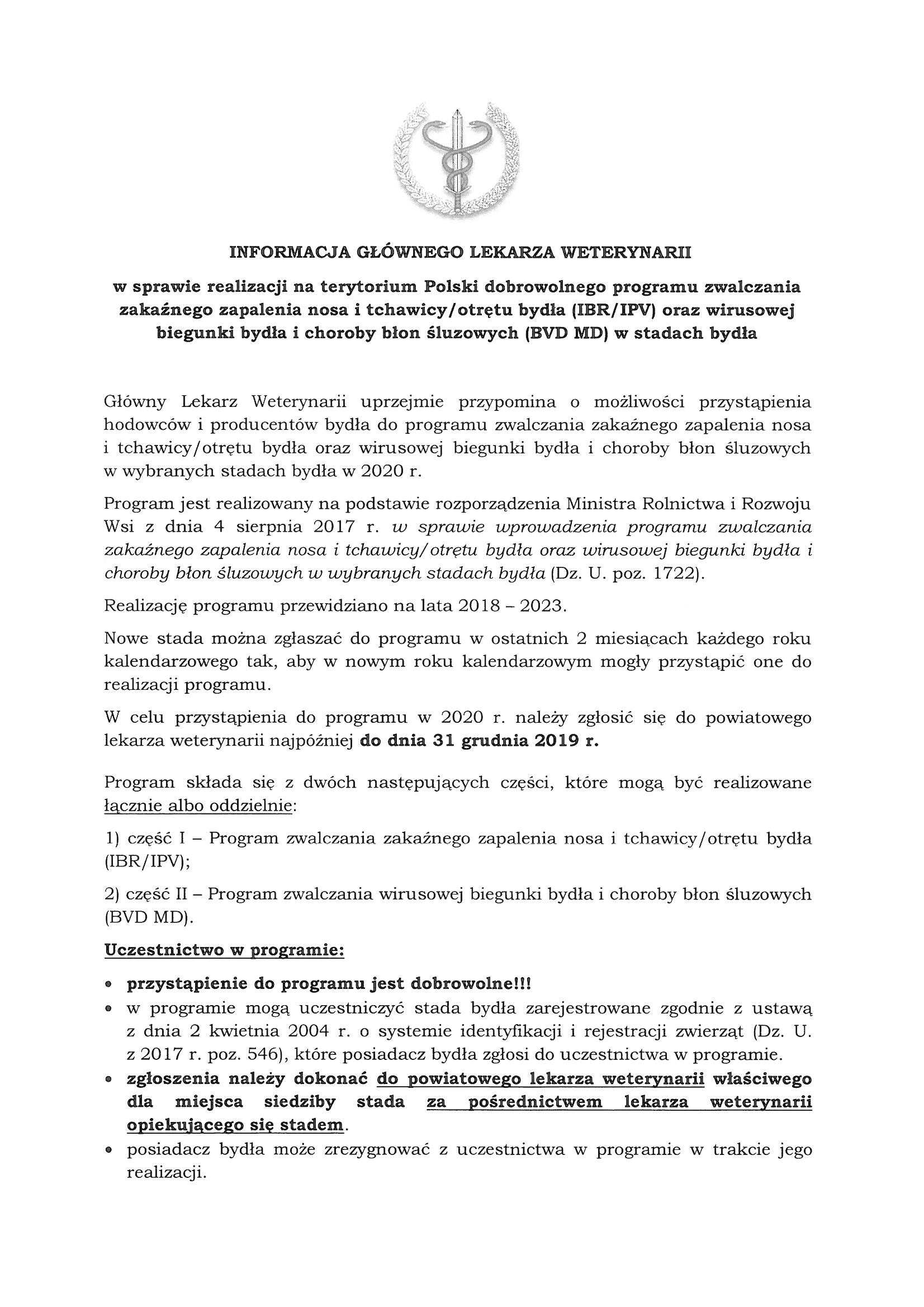 Informacja Głównego Lekarza Weterynarii