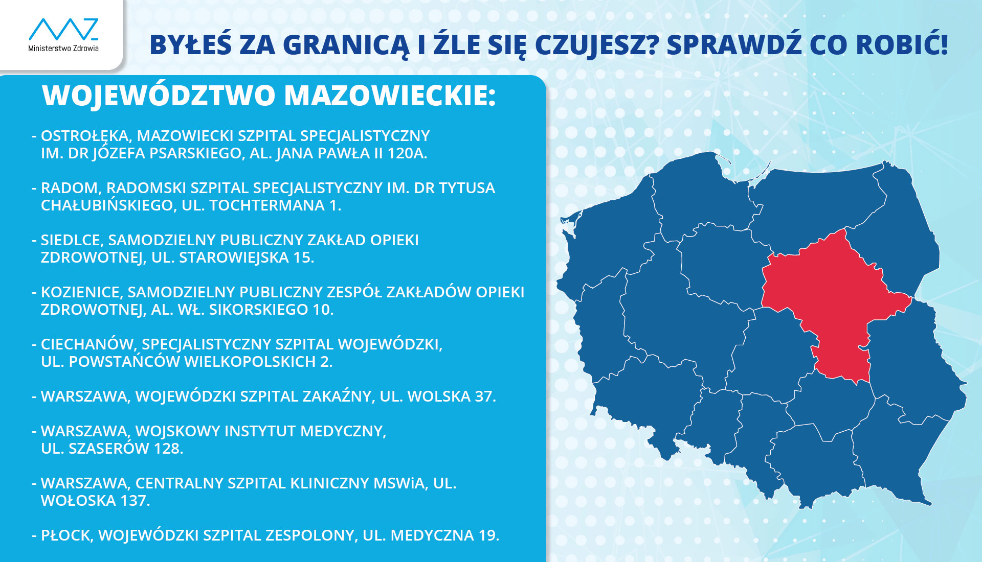Jeśli w ciągu ostatnich 14 dni byłeś w północnych Włoszech, Chinach, Korei Południowej, Iranie, Japonii, Tajlandii, Wietnamie, Singapurze lub Tajwanie i zaobserwowałeś u siebie objawy, takie jak: gorączka, kaszel, duszność i problemy z oddychaniem, to