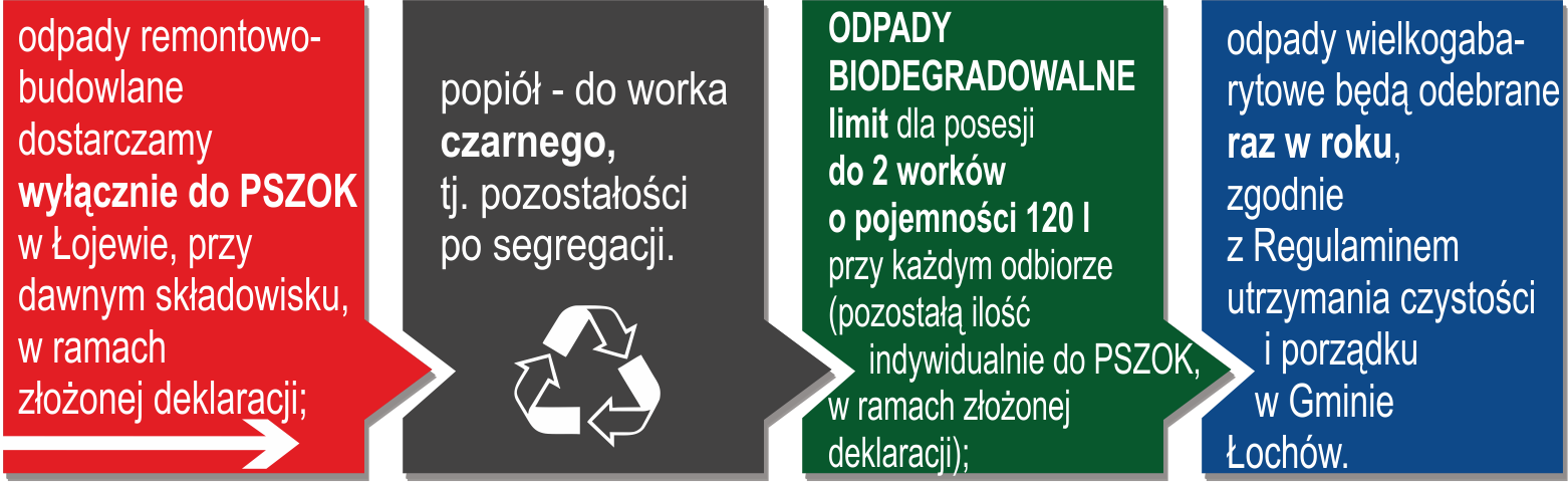 • koszty transportu odpadów –odpady z terenu gminy Łochów trafiają do: Woli Suchożebrskiej, Ostrołęki i Ostrowi Mazowieckiej, średnio pokonują 60-70 km (a nie jak do 2013 roku, kiedy były transportowane do Łojewa około 15 km).