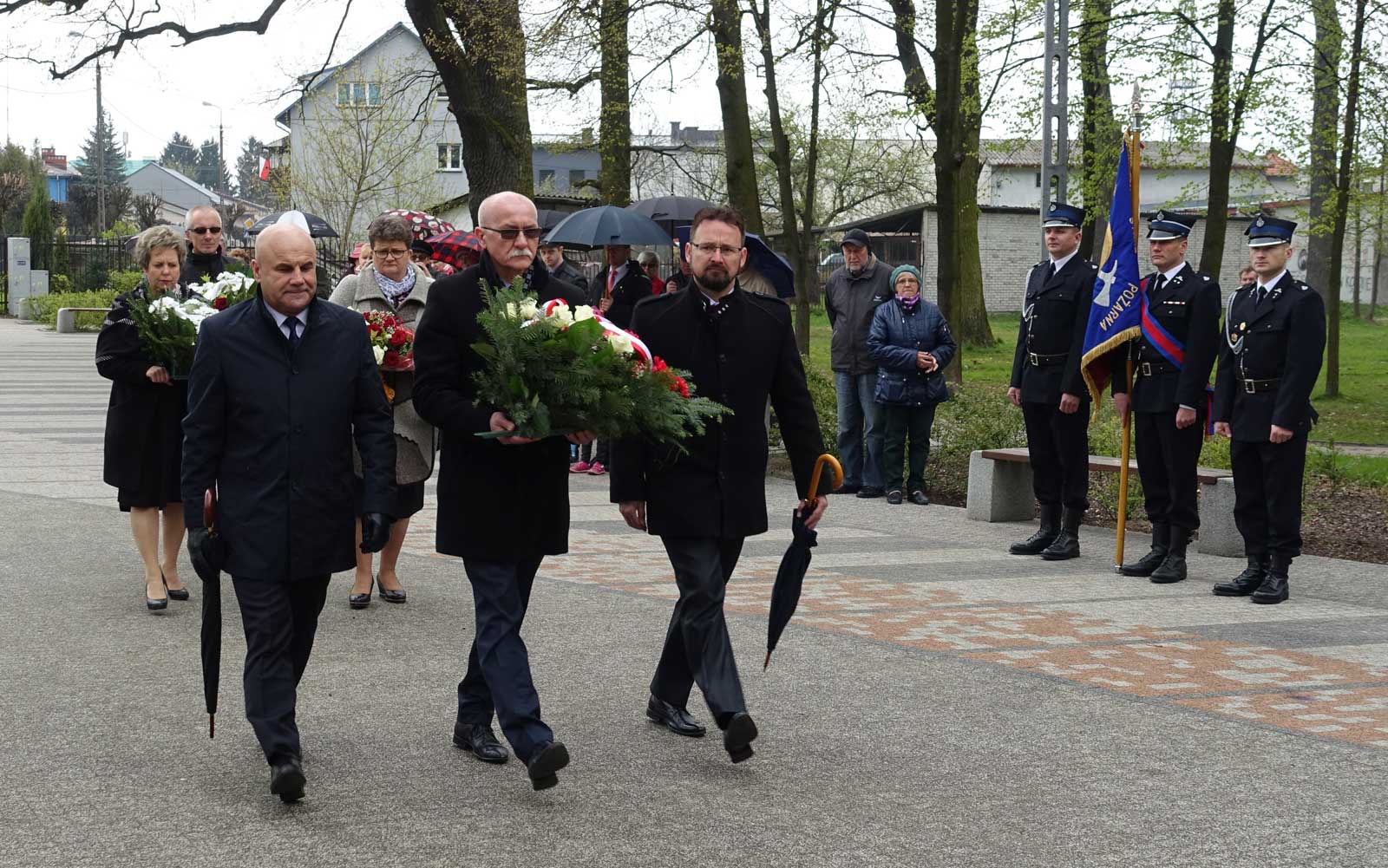 Po przemówieniu przedstawiciele zgromadzonych delegacji złożyli kwiaty pod pomnikiem.