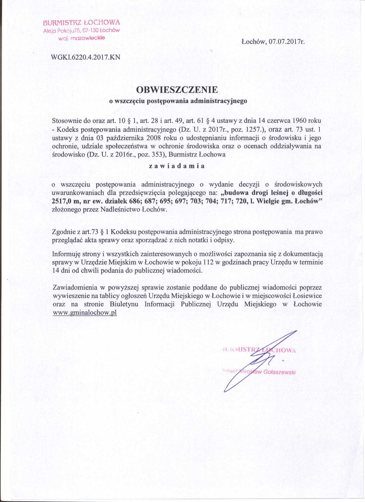 OBWIESZCZENIE BURMISTRZA ŁOCHOWA o wszczęciu postępowania administracyjnego