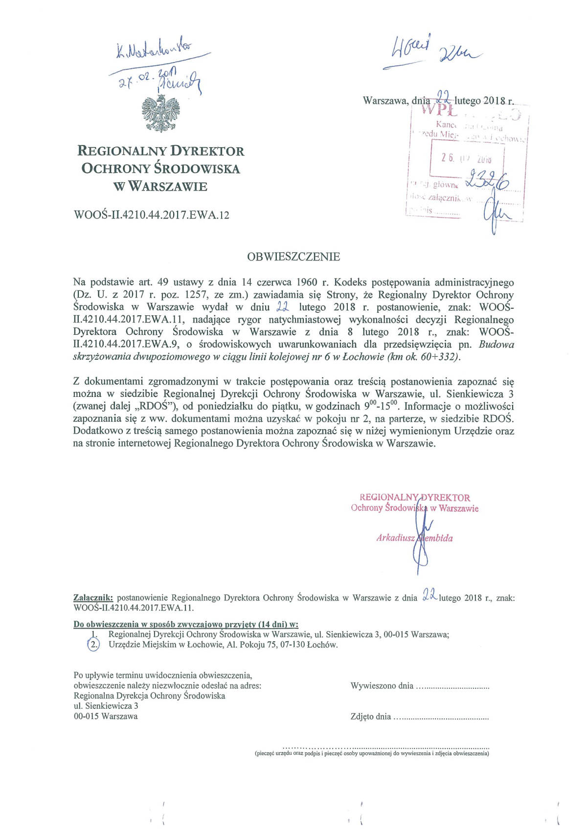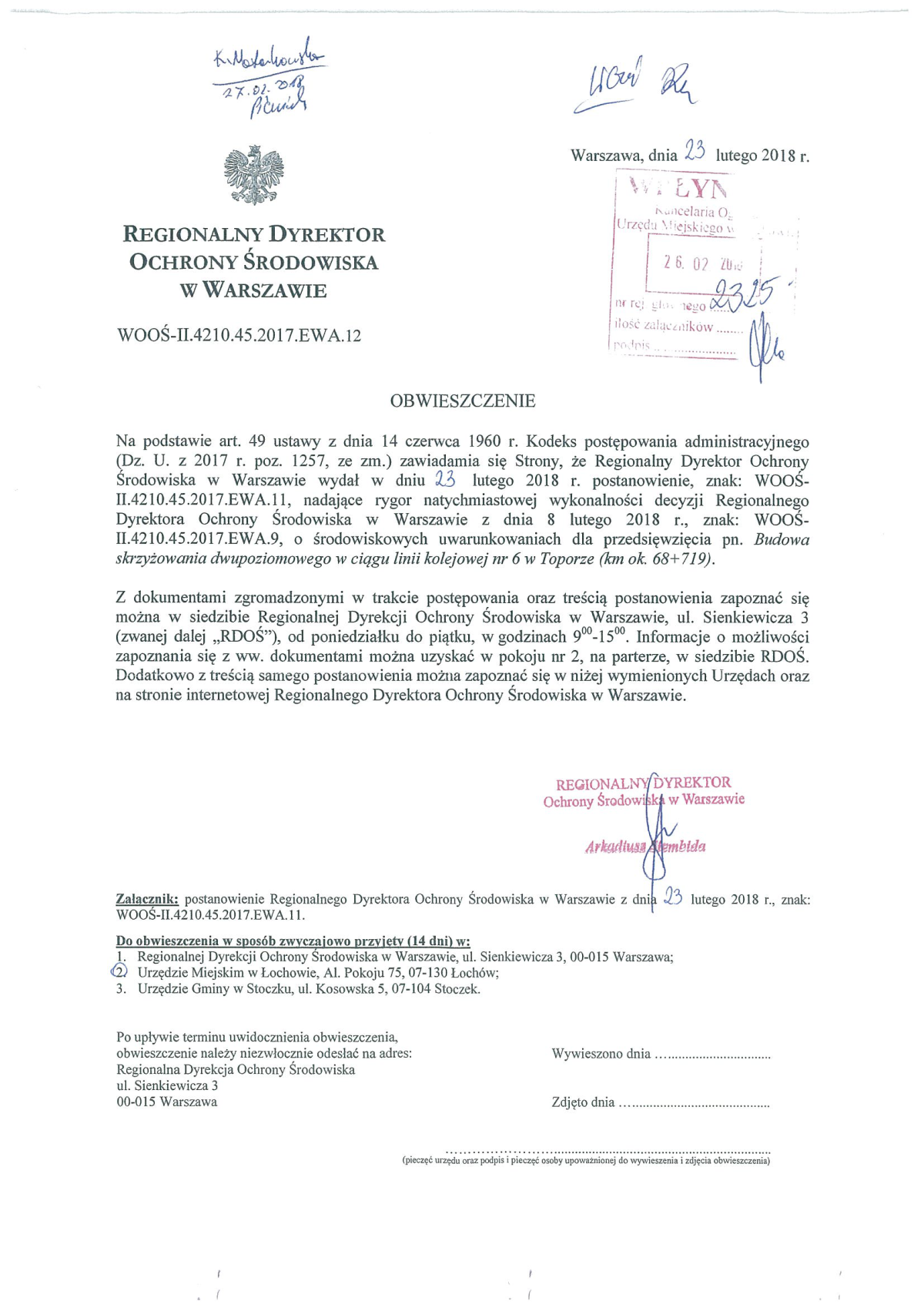 Obwieszczenie Regionalnego Dyrektora OŚ w Warszawie