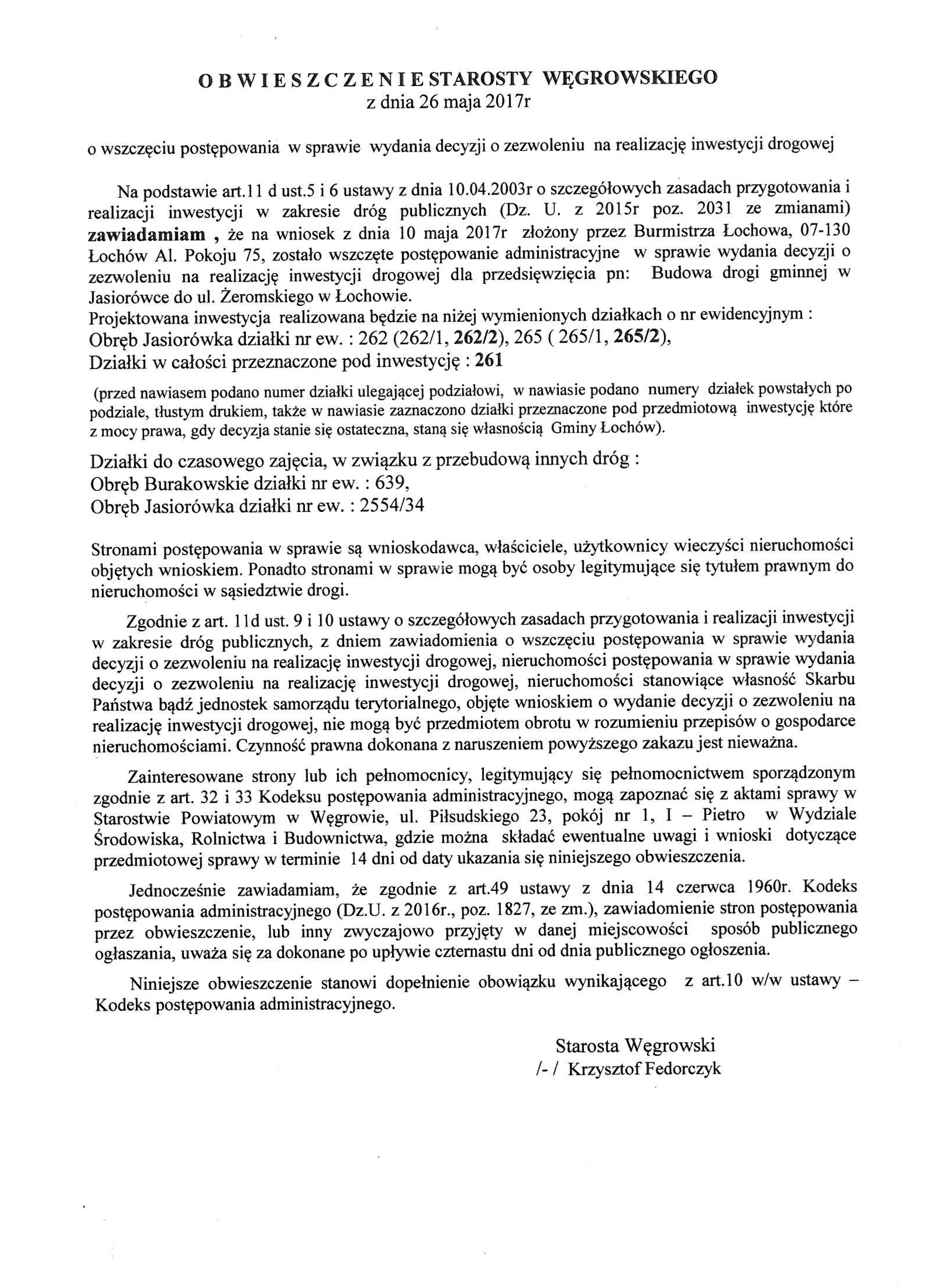 OBWIESZCZENIE STAROSTY WĘGROWSKIEGO