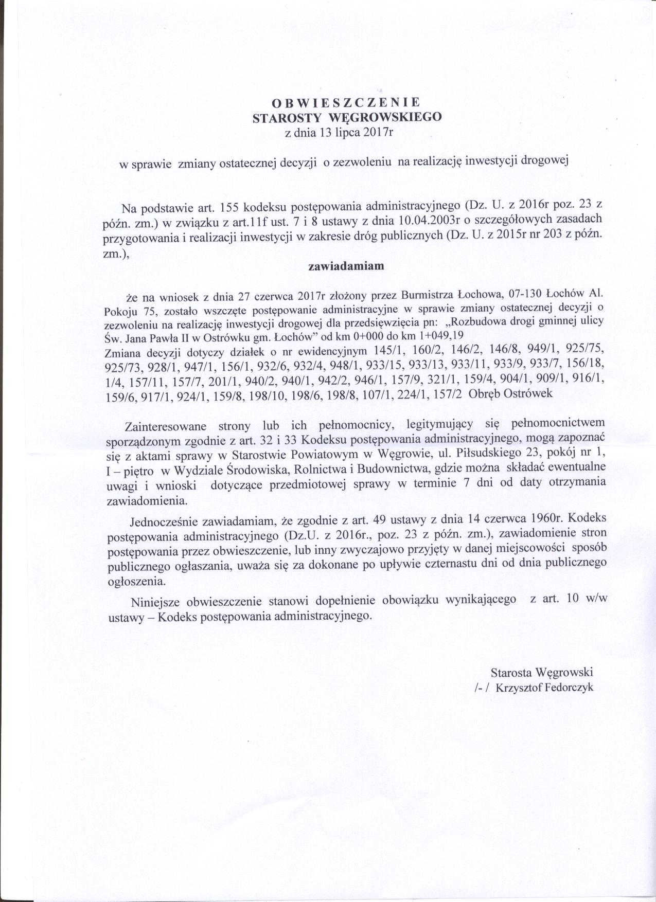 OBWIESZCZENIE STAROSTY WĘGROWSKIEGO