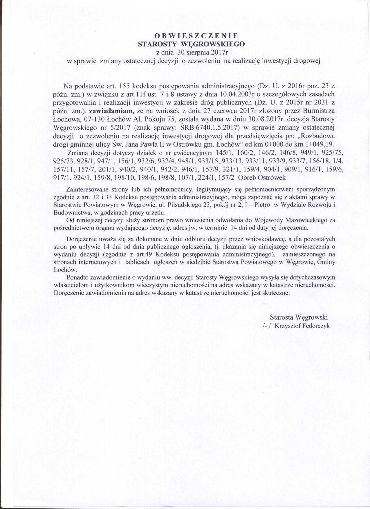 OBWIESZCZENIE STAROSTY WĘGROWSKIEGO