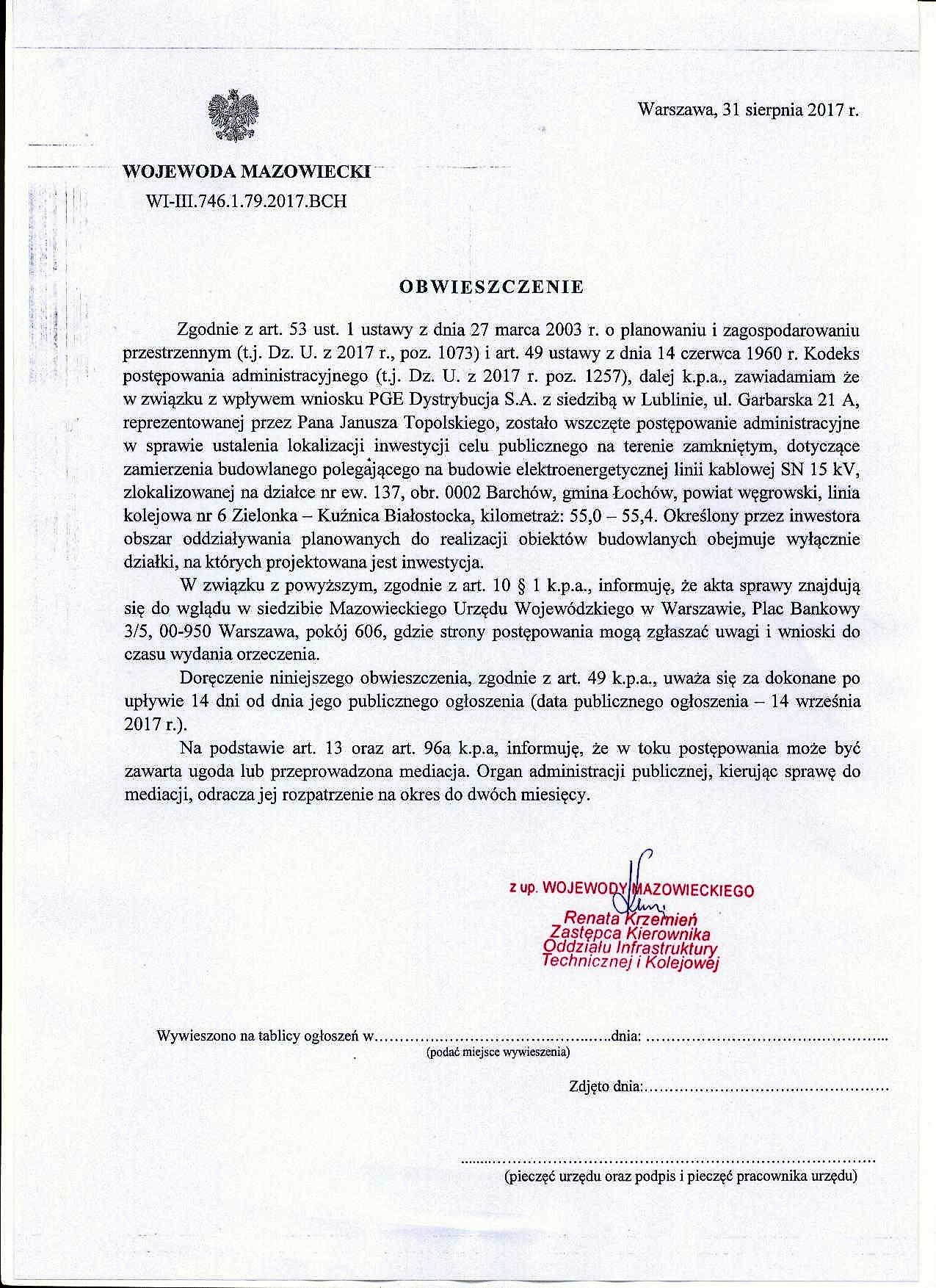 OBWIESZCZENIE WOJEWODY MAZOWIECKIEGO