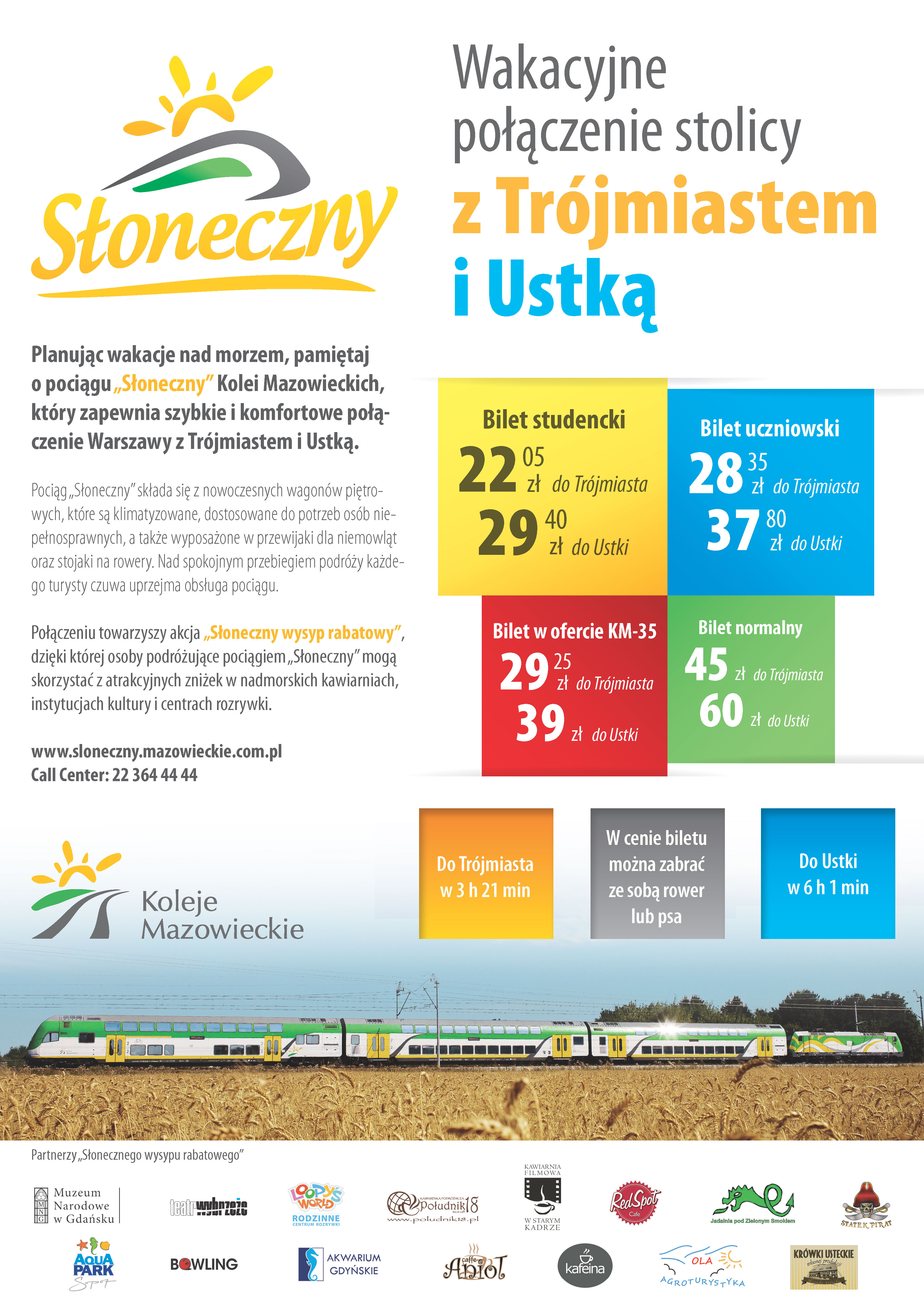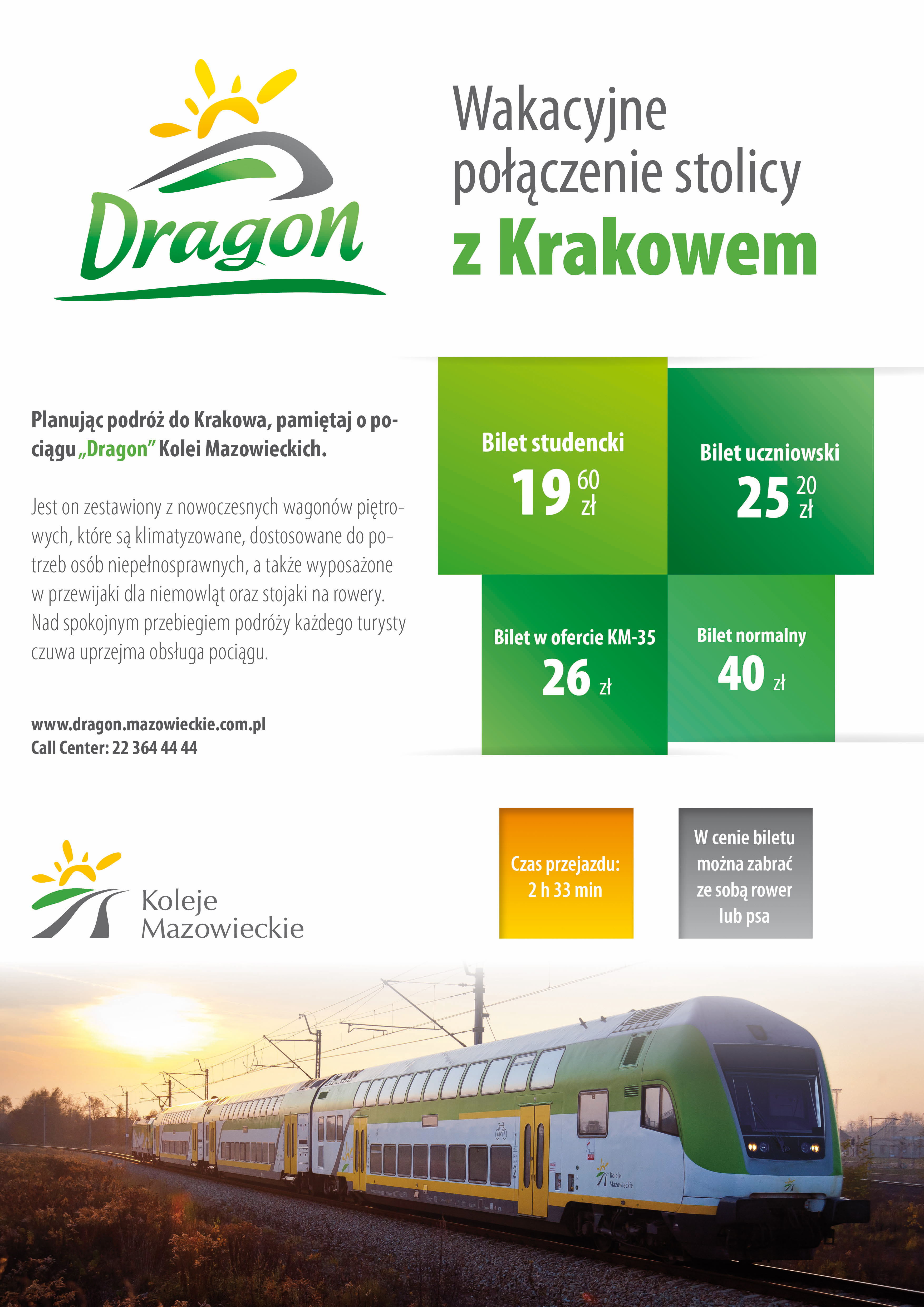 Spółka „Koleje Mazowieckie – KM” 25 czerwca 2016 r. uruchomi wakacyjne połączenia Warszawy z Trójmiastem i Ustką – pociąg „Słoneczny”, a także z Krakowem – pociąg „Dragon”.