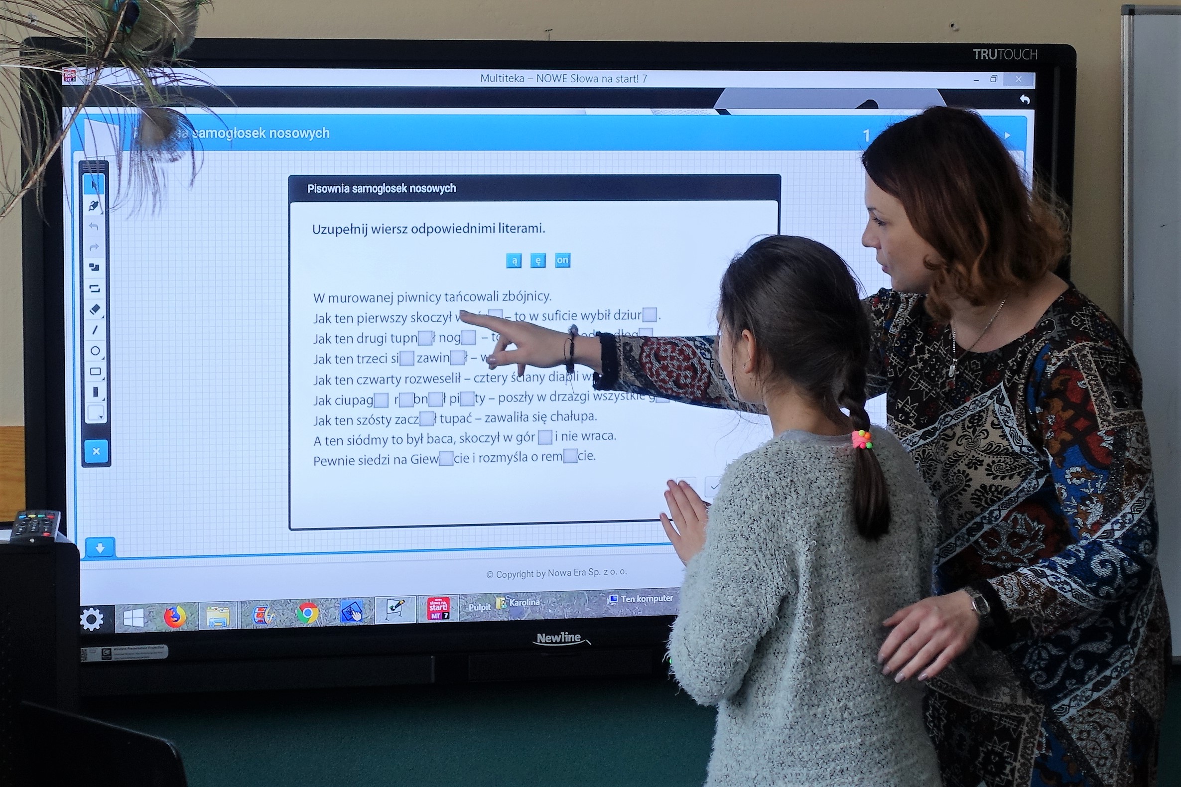 Zakupiony sprzęt wykorzystywany będzie w trakcie prowadzonych zajęć i ma przyczynić się do zwiększenia wykorzystania nowych technologii w procesie edukacyjnym. Obsługa takiego jest bardzo prosta i nie stanowi problemu dla uczniów. Użytkownik dotyka interaktywnego monitora palcem lub specjalnym „pisakiem”, który działa jak zwykła myszka komputerowa. Można uruchomić dowolny program multimedialny, przesuwać zdjęcia, włączać dźwięki i filmy oraz w pełni kontrolować dowolną aplikację. Można także pisać i rysować kolorowymi pisakami, nanosić notatki na dowolny obraz, korzystać z bogatej bazy rysunków zawartych w oprogramowaniu tablicy. Daje to nam możliwość tworzenia nowoczesnych, dynamicznych, interaktywnych prezentacji. Co więcej, tak przeprowadzoną prezentację możemy zapisać na dysku i wykorzystać ją później na kolejnej lekcji. Stojąc bezpośrednio przy tablicy nauczyciel może prowadzić lekcję, obsługiwać komputer i kontrolować pracę uczniów.