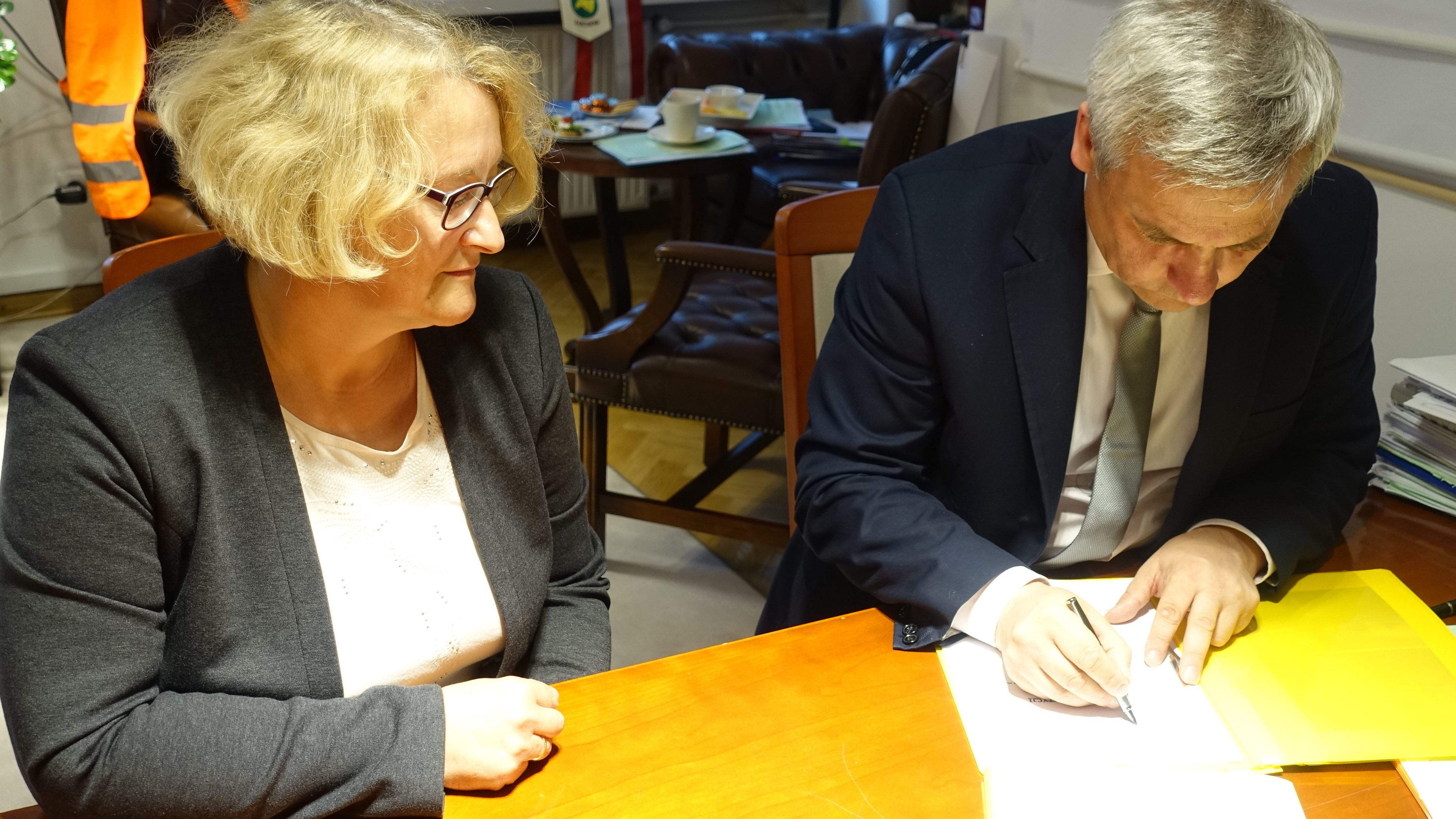 W poniedziałek 12 czerwca Jerzy Szmit wiceminister Infrastruktury i Budownictwa w obecności wicemarszałek senatu Marii Koc, Roberta Gołaszewskiego Burmistrza Łochowa i Krystyny Kielan sołtysa wsi Kamionna i Radnej Rady Miejskiej w Łochowie, podpisał finansowanie z budżetu państwa na 3 zadania, dwa z nich dotyczą naszej gminy.