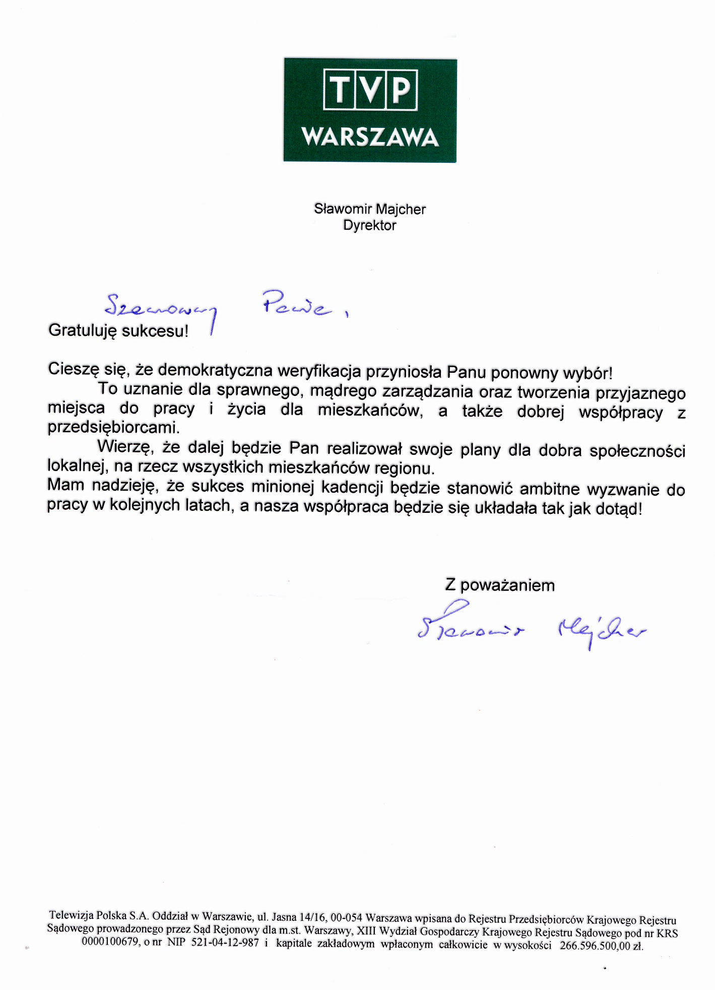 TVP Warszawa - gratuluję sukcesu!