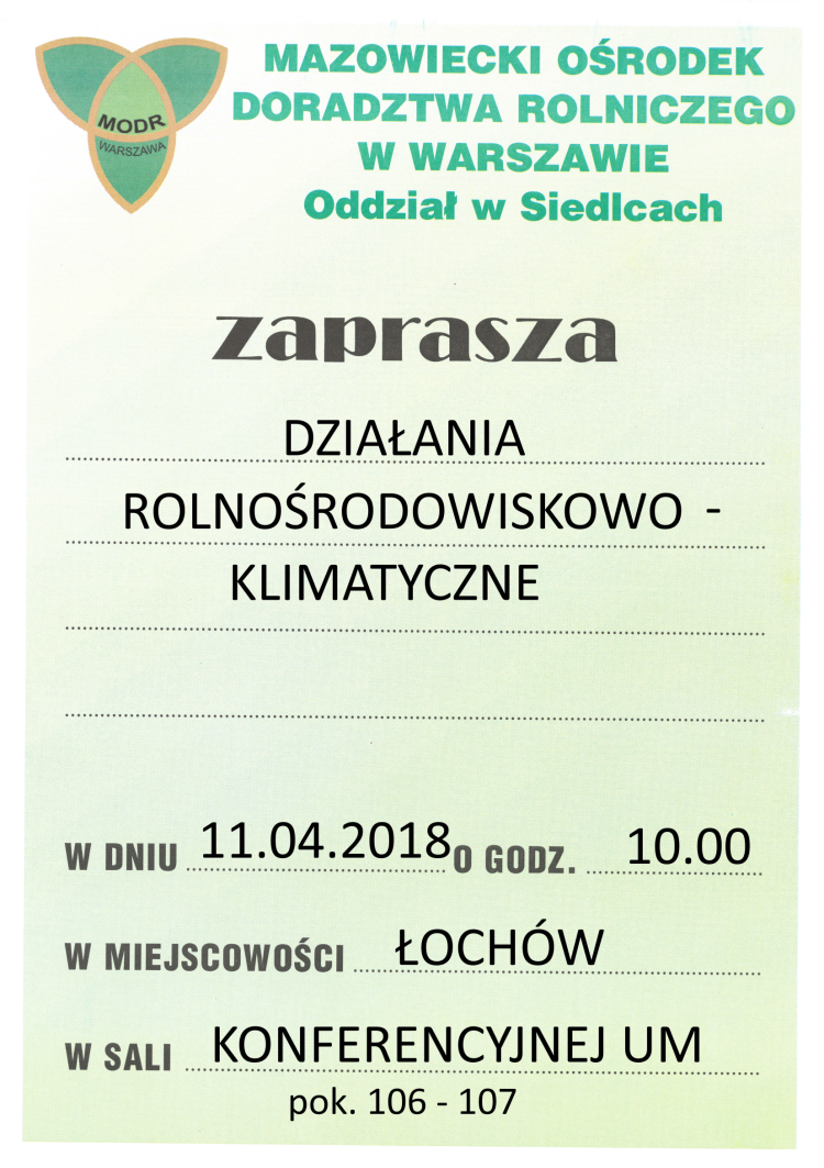 UWAGA ROLNICY! MODR Oddział w Siedlcach zaprasza na spotkanie: DZIAŁANIA ROLNOŚRODOWISKOWO - KLIMATYCZNE