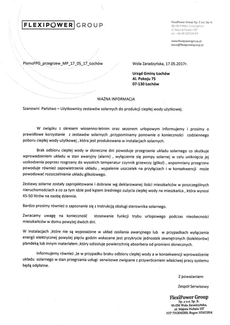 Ważna informacja dla użytkowników zestawów solarnych.