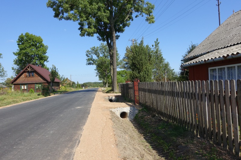 Inwestycja obejmowała przebudowę drogi, której długość wynosi 980 mb, w ramach prac wykonano drogę o nawierzchni asfaltowej wraz z trzema przepustami poprzecznymi.