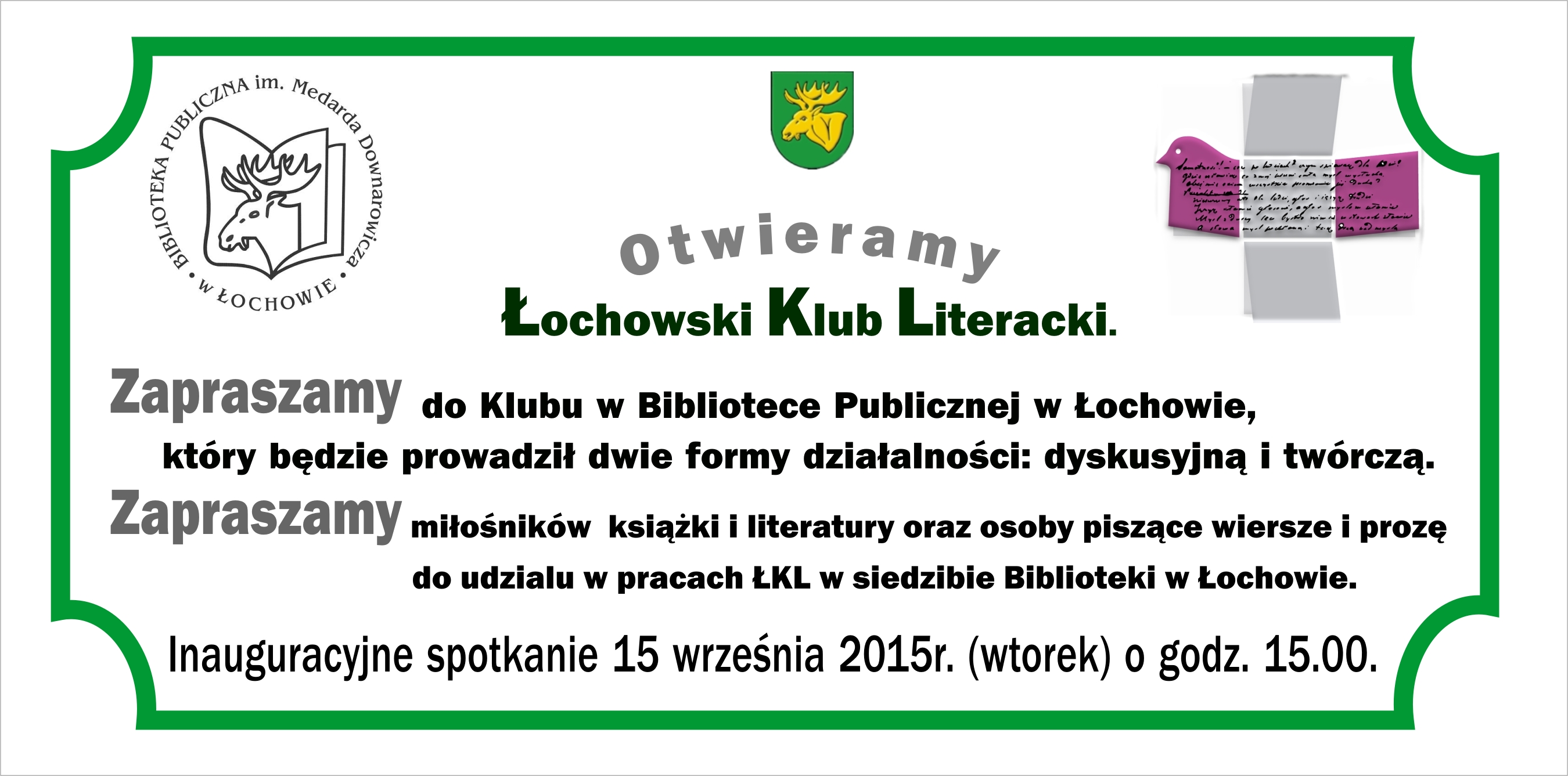 Zapraszamy do nowego Łochowskiego Klubu Literackiego.